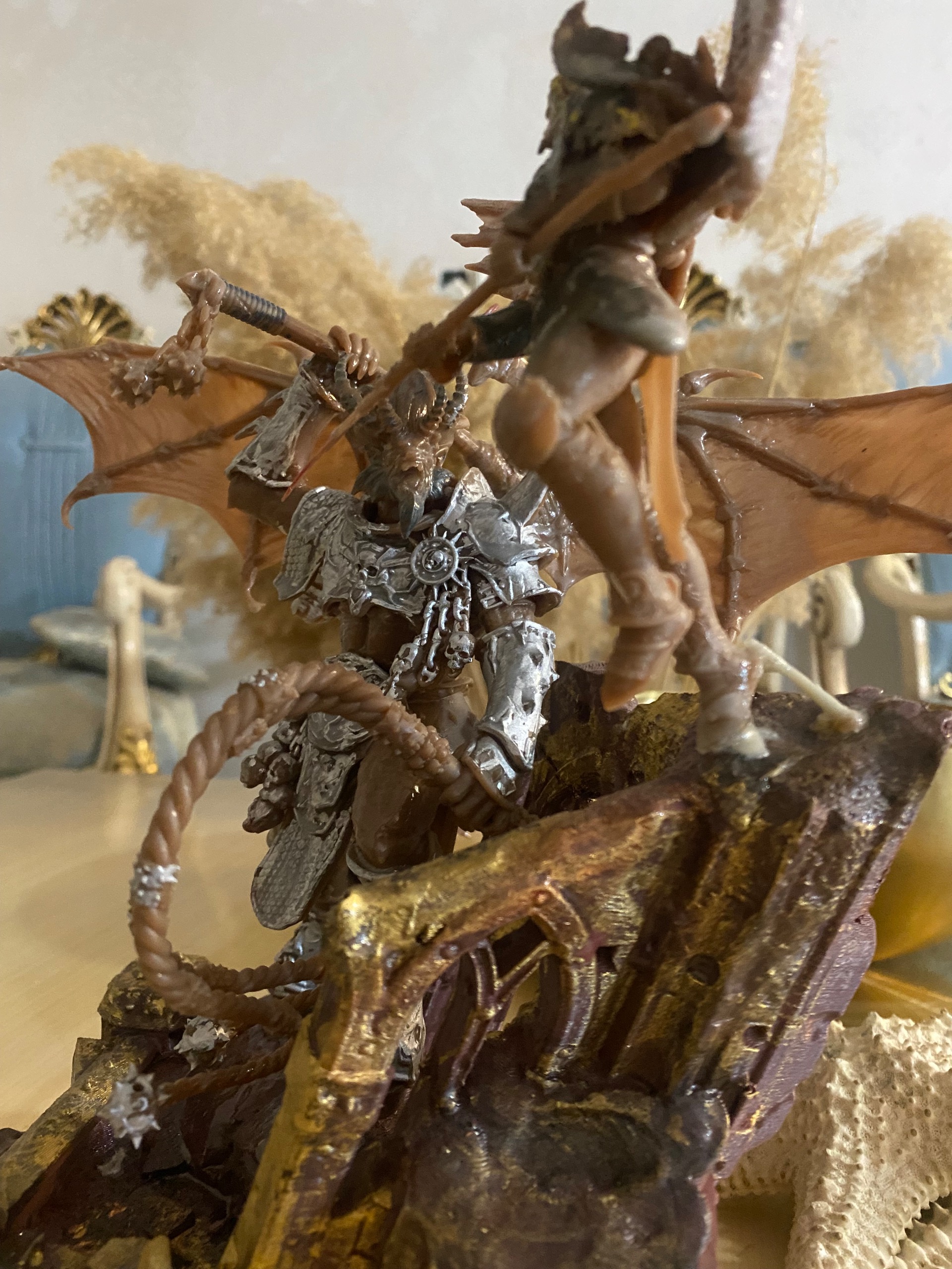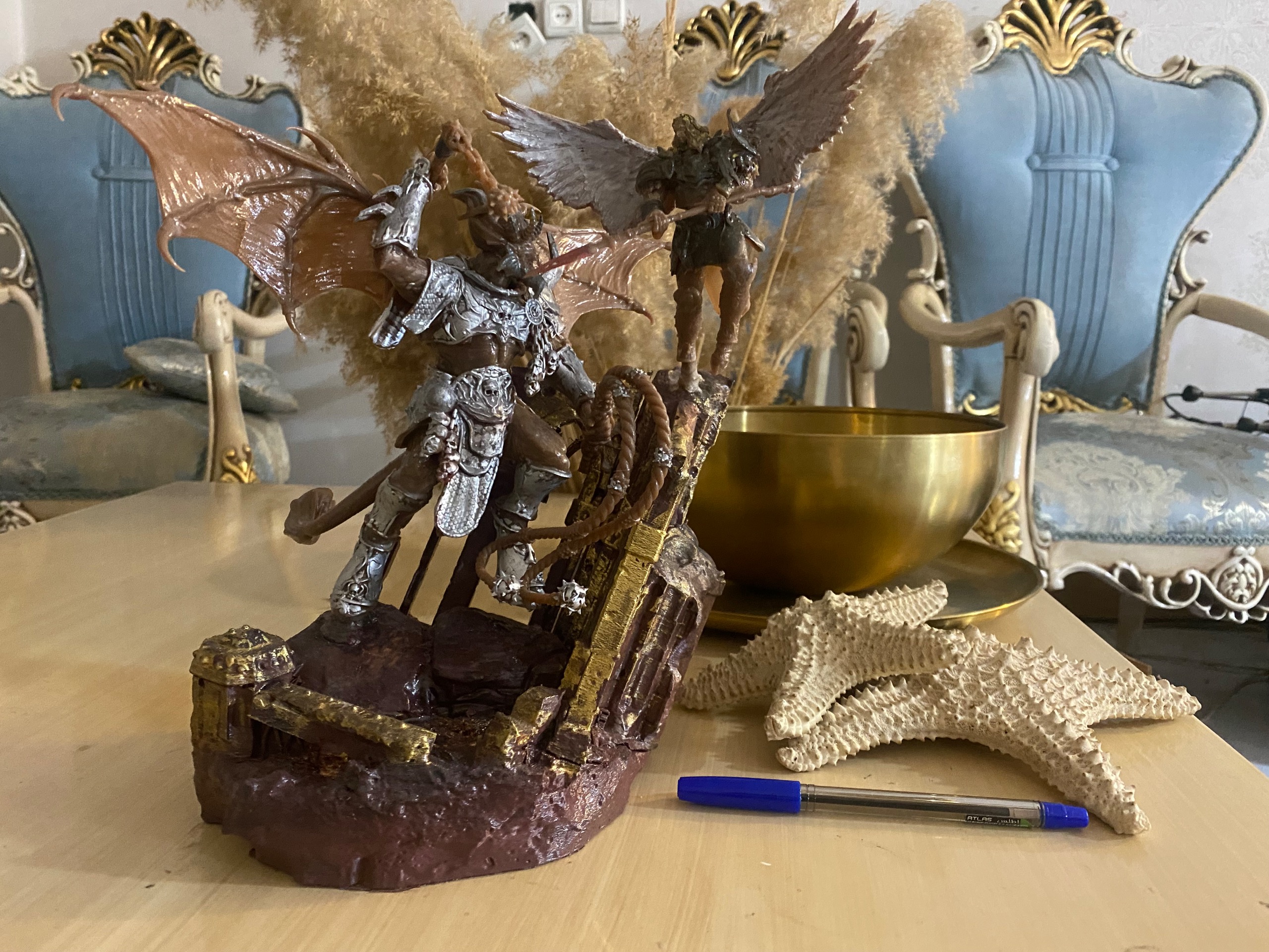 مجسمه رزینی زیبا جنگ دیو و اسطوره با جزییات زیاد ارتفاع حدود 30 سانتی متر