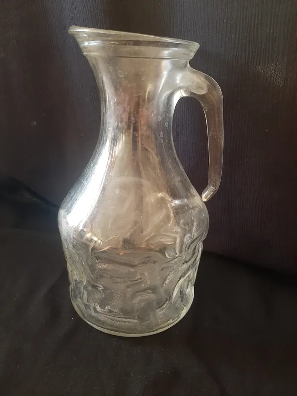 یک عدد پارچ سفید پایین طرح یخی دست دوم سالم بدون لبپری ارتفاع 23 قطر دهانه 8