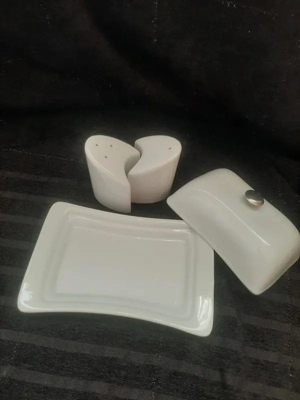 یک عدد کره خوری هوم کالکشن مارک سیلویا قطر بیرون 18 در 10 و داخل 13 در 7 دسته پیچ دار و دو عدد نمکپاش و فلفل پاش ارتفاع 8 همگی سالم و در حد نو توجه بفرمائید روی این کالا برچسب ترانسفر چسبانده شده جهت زیبایی عکس قبل از برچسب زدن هم گذاشته شده
