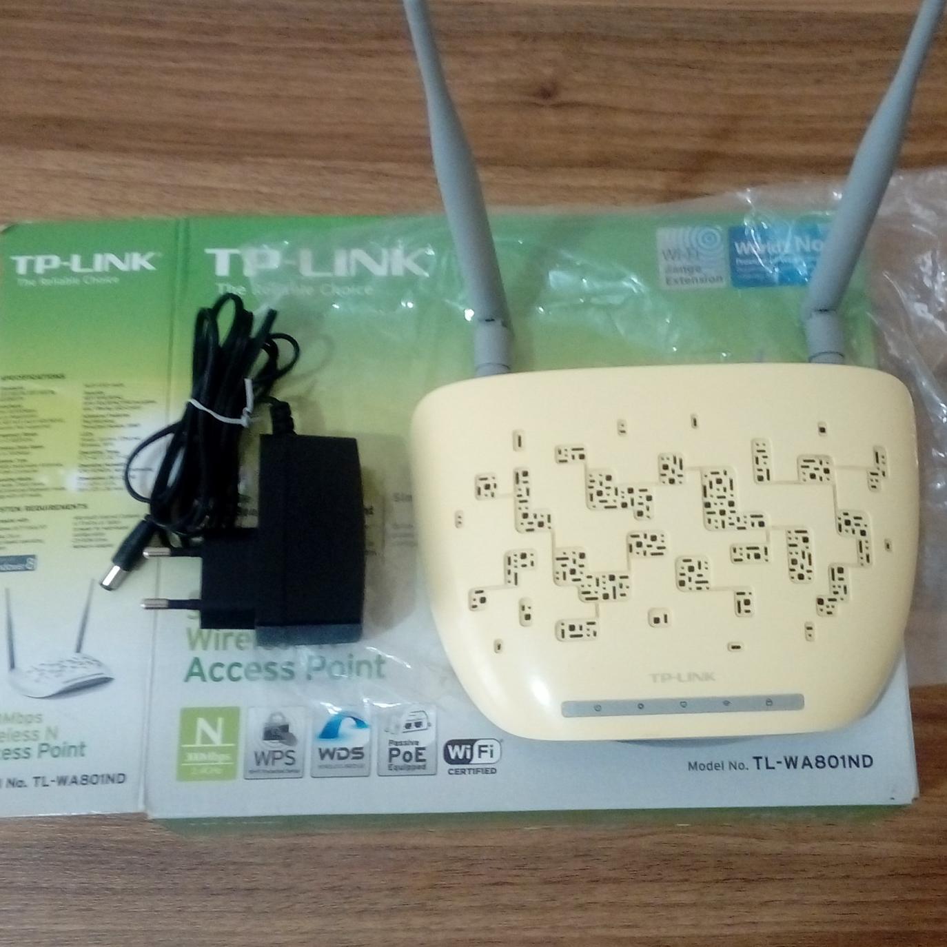 اکسس پوینت دو انتنه سالم برند تی پی لینک دو انتنه سرعت300 مگابیت بر ثانیه TL-WA801ND.فقط ظاهرش بعلت مرور زمان زرد شده ولی کار کردش عالیه کم استفاده شده.همراه کارتن و کابل پاور مربوطه.