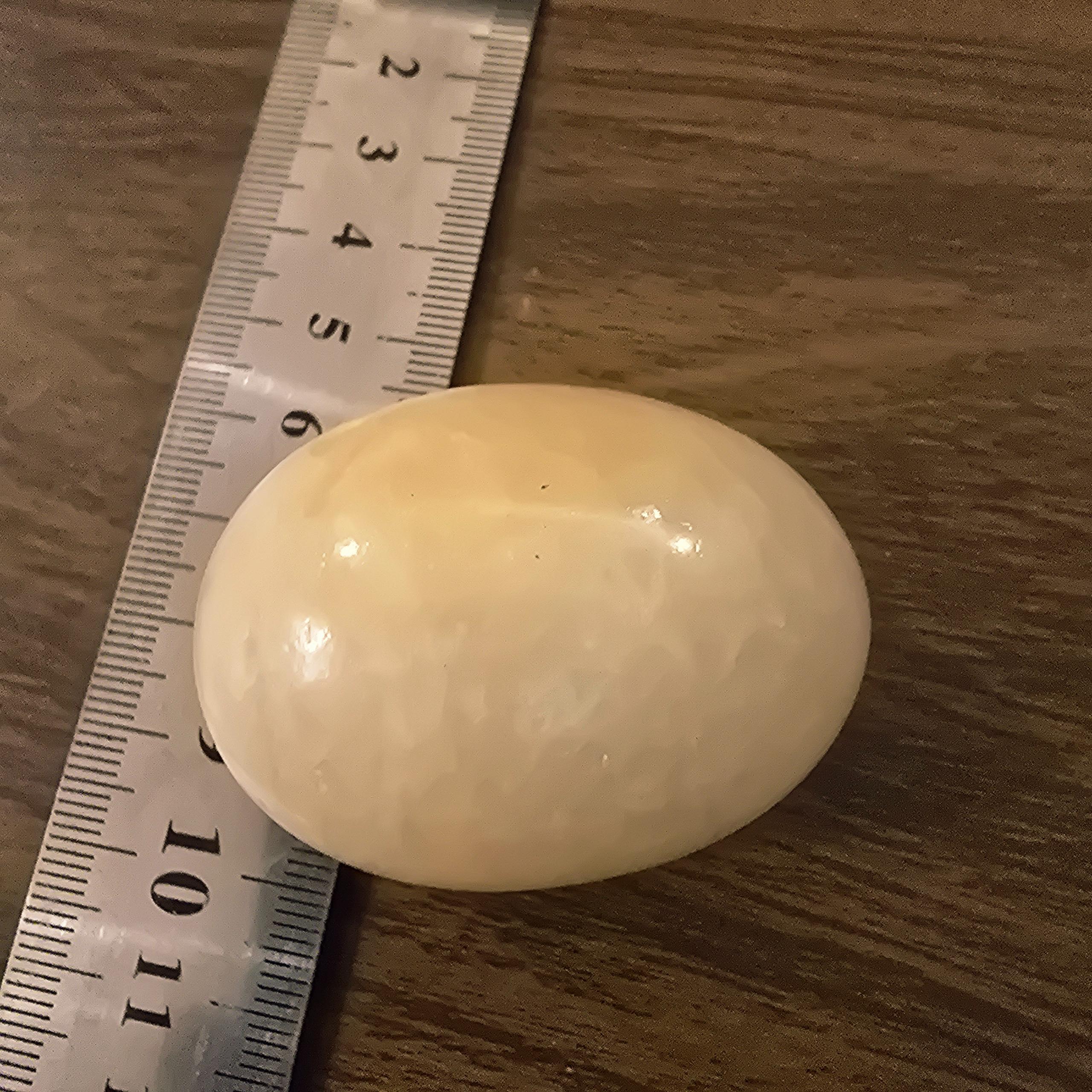 سنگ مرمر تخم مرغی بزرگ به ارتفاع حدودا چهار و نیم سانت رنگ کرم روشن بسیار زیبا و کلکسیونی