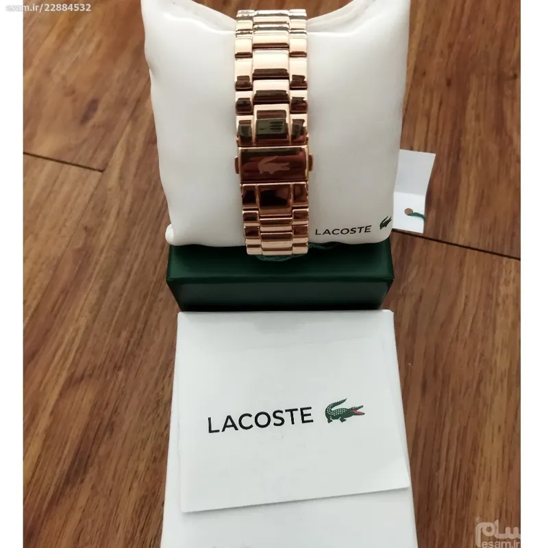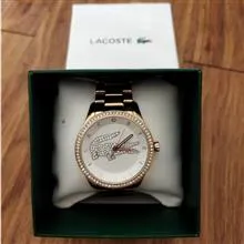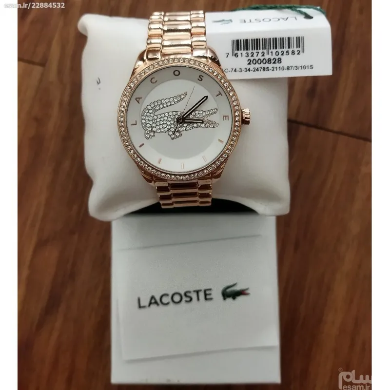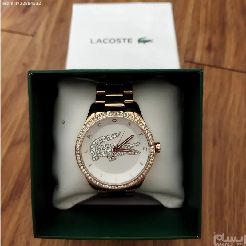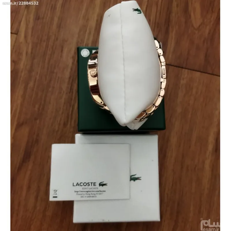 ساعت مچی lacoste اصل با آب طلای رز گلد با کریستال های سواروسکی با بارکد اصالت نو با جعبه اصلا استفاده نشده