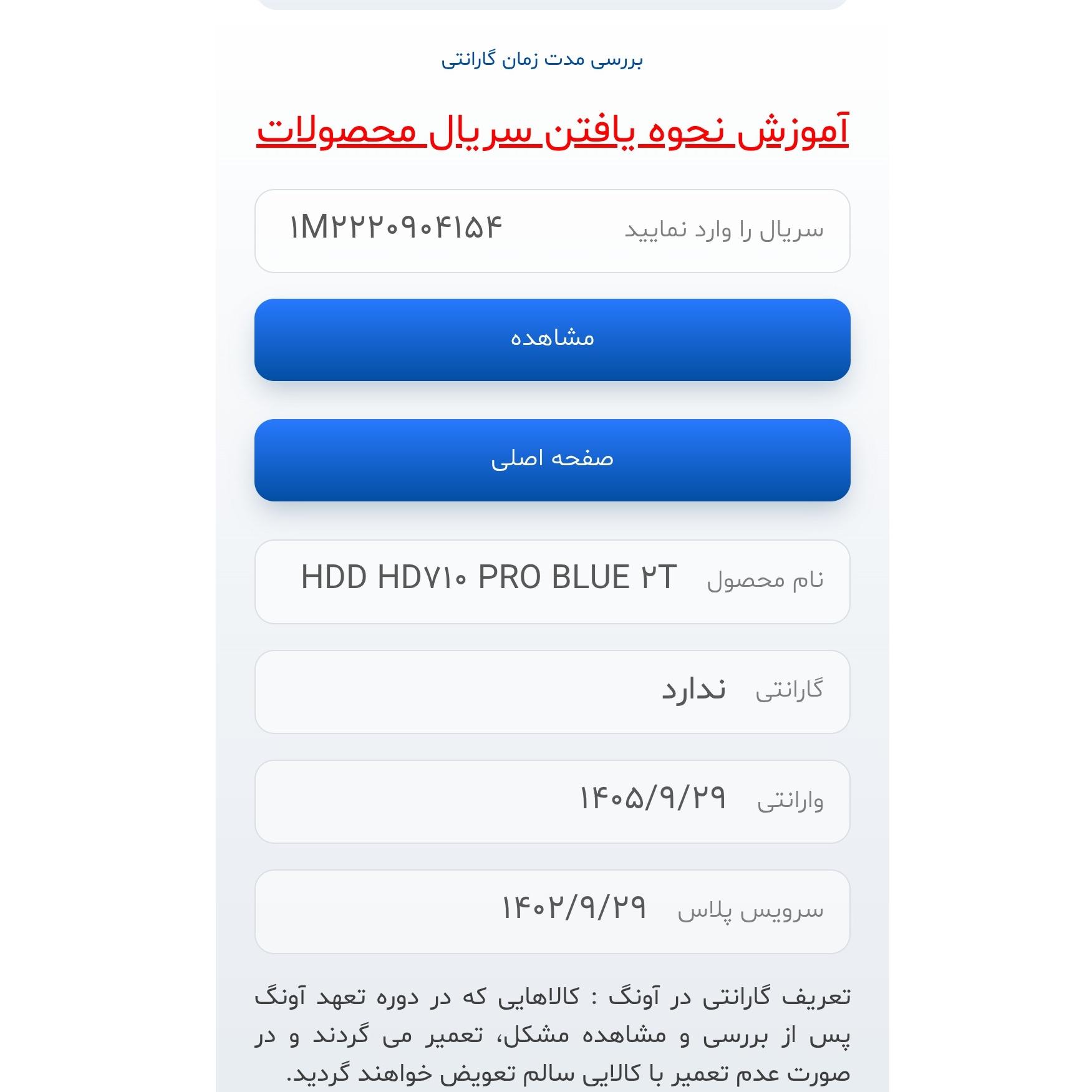 بر اساس سریال نامبر روی کارتن فاقد گارانتی هست ، اما تا 1405/9/29 مشمول وارانتی می شود .