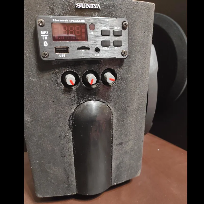 ماژول ام پی تری بکار رفته دراین اسپیکر خانگی واجد کنترل با دو عدد باتری نیم قلمی ،ورودی AUX ،کارت حافظه TF، ویکعدد پورت USB است