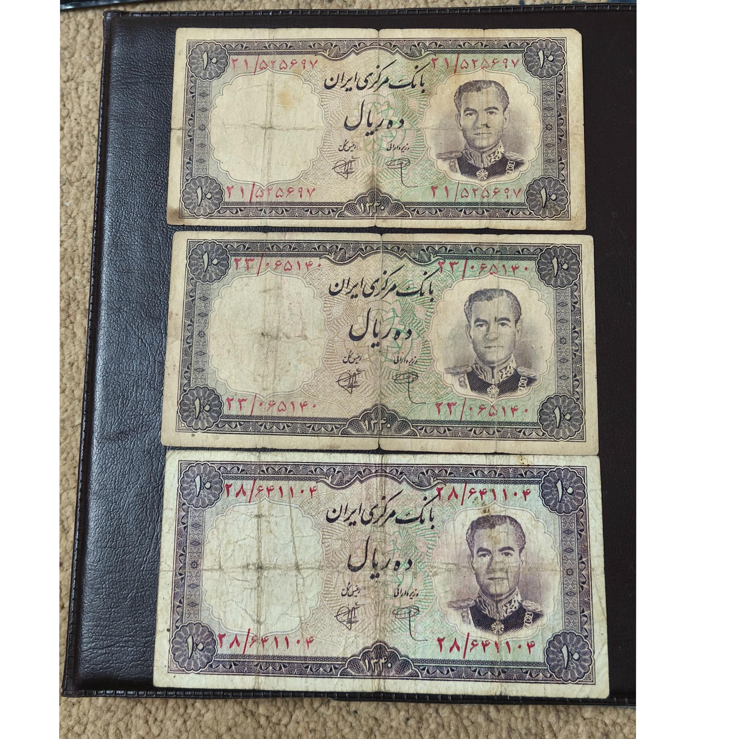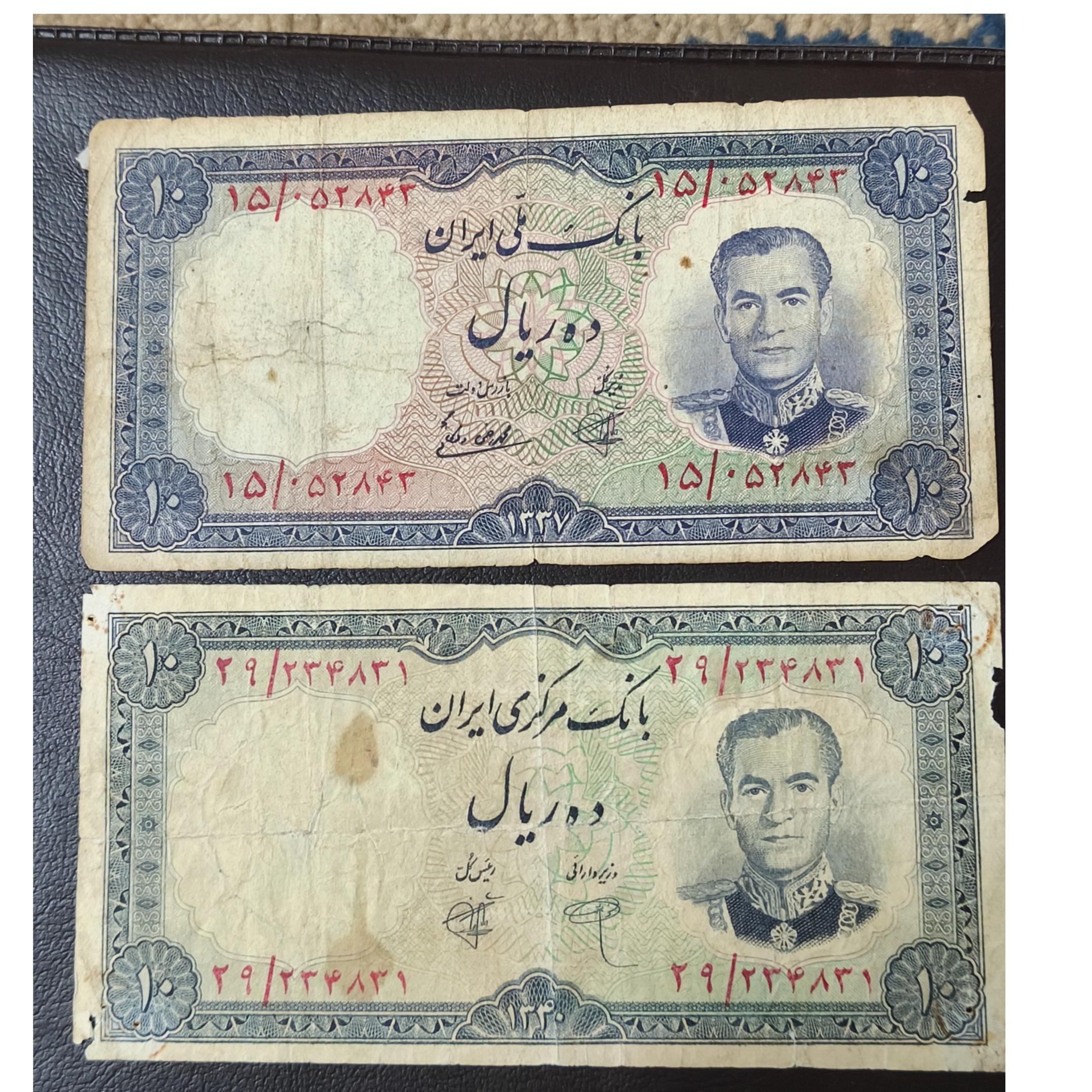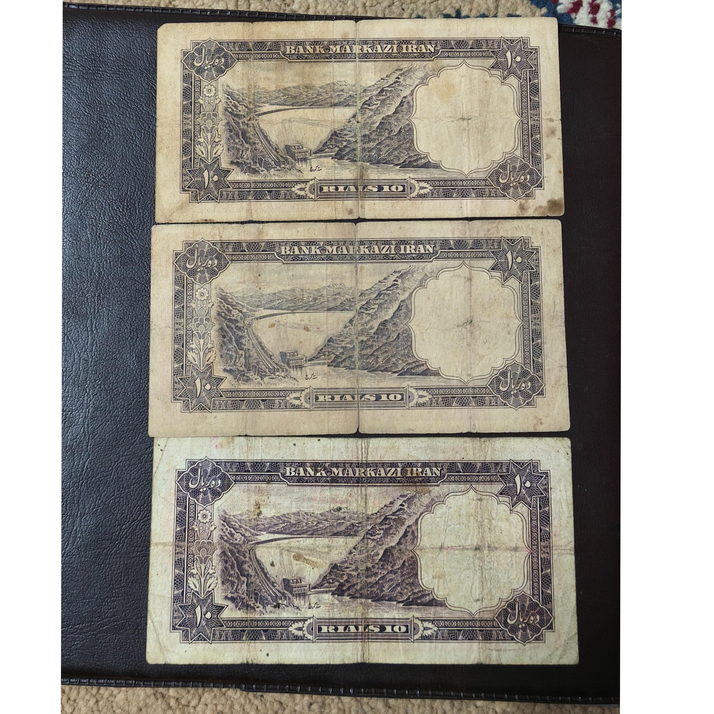 پنج عدد اسکناس ده ریالی پهلوی با کیفیت مطابق عکس ها