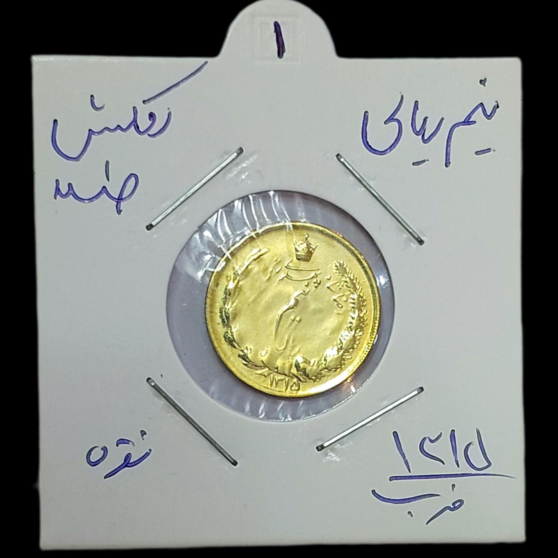 سکه نقره طلایی بینظیر نیم ریال رضا شاه 1315