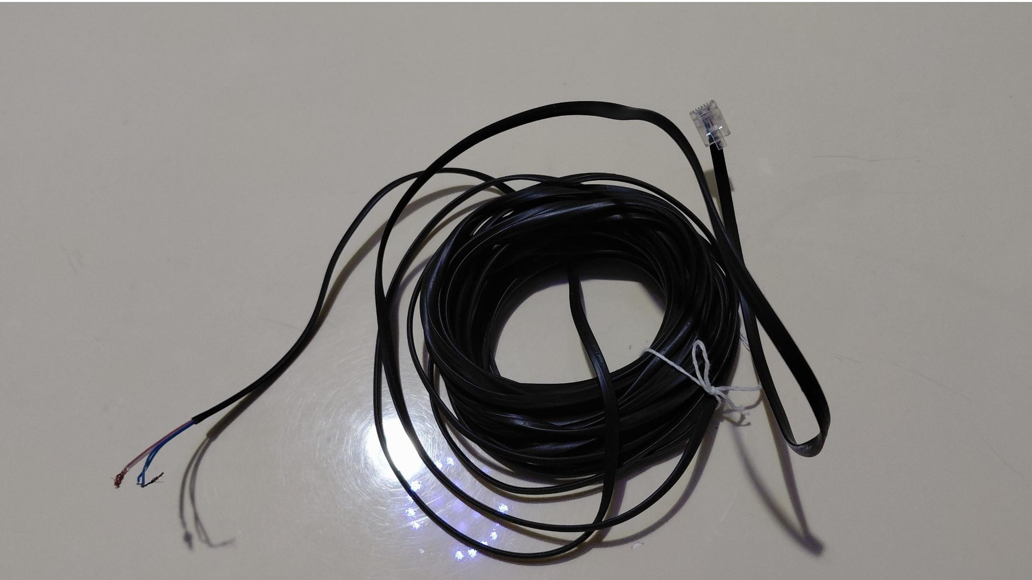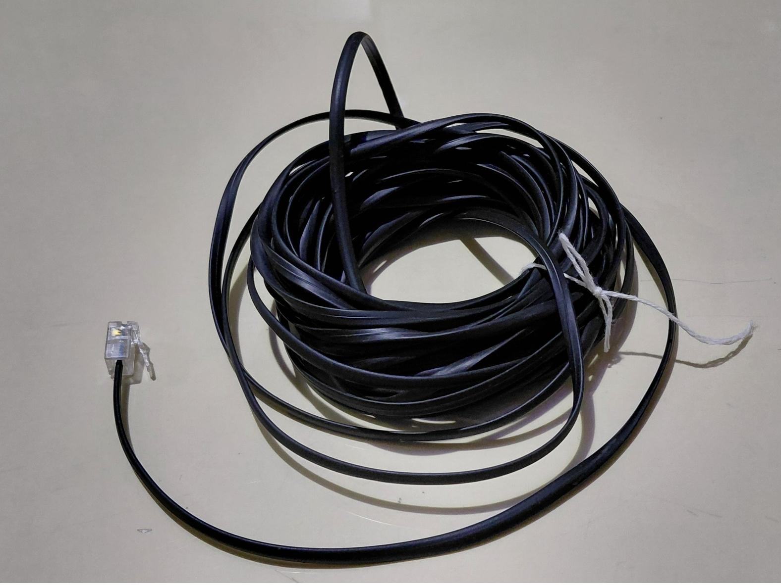 کابل 8 متری تلفن دارای یک سر سوکت دار و یک سر بدون سوکت