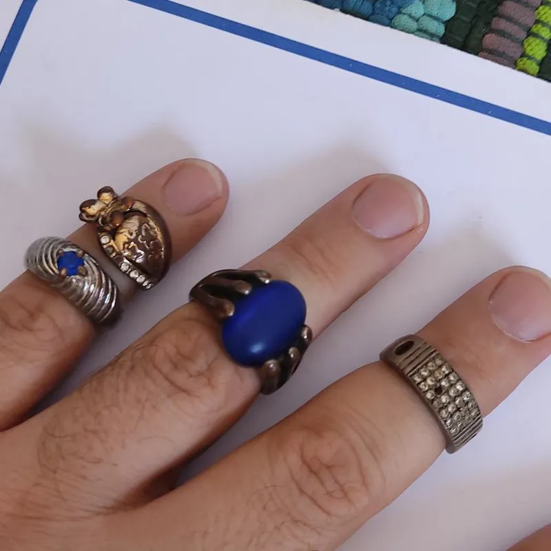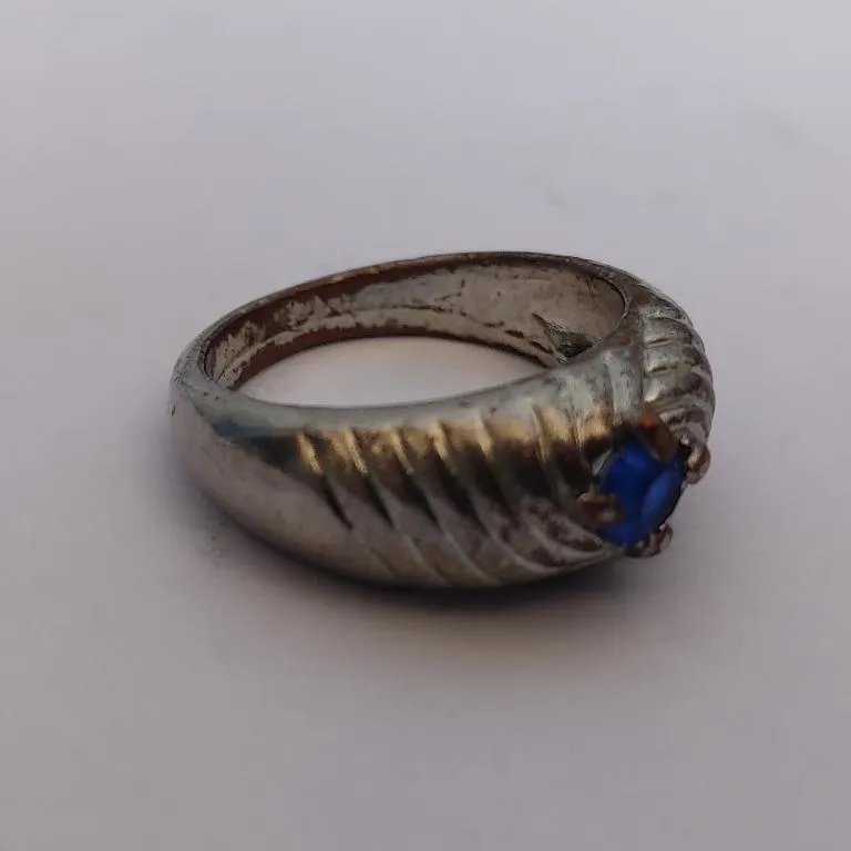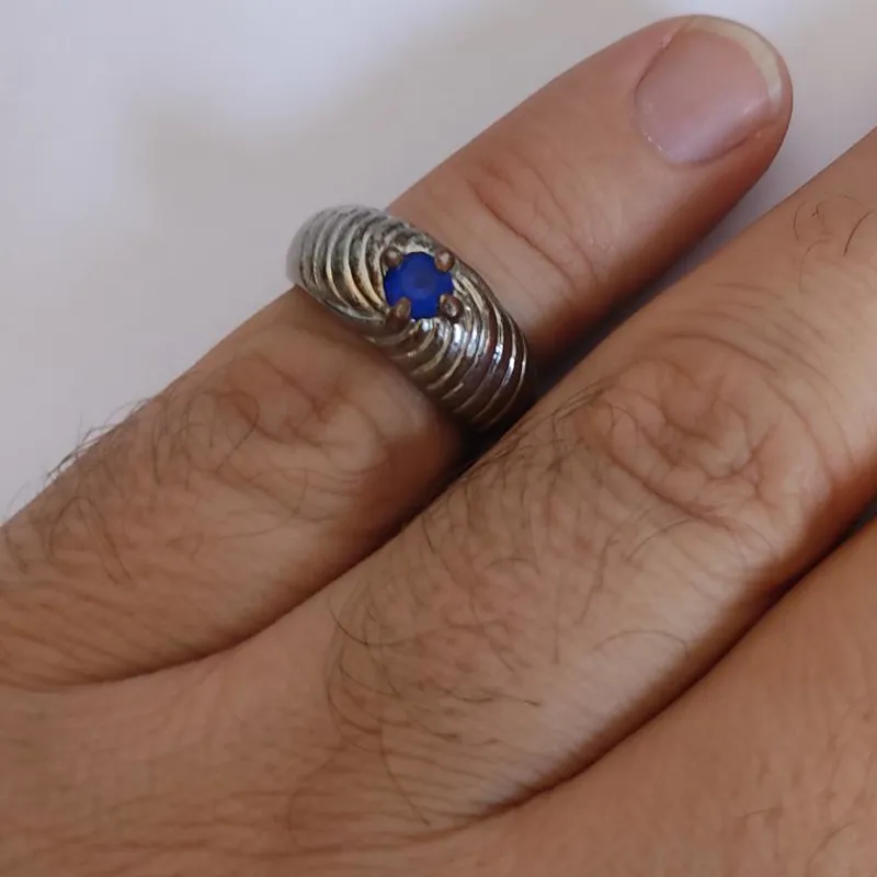 خریدار محترم توجه کند که من شناخت زیادی از سنگ ها ندارم. حدس می زنم جنس سنگ، یاقوت آبی باشه بر روی استیل... لطفاً بر اساس دانش و آگاهی خودتون خرید انجام بدید. ممنون