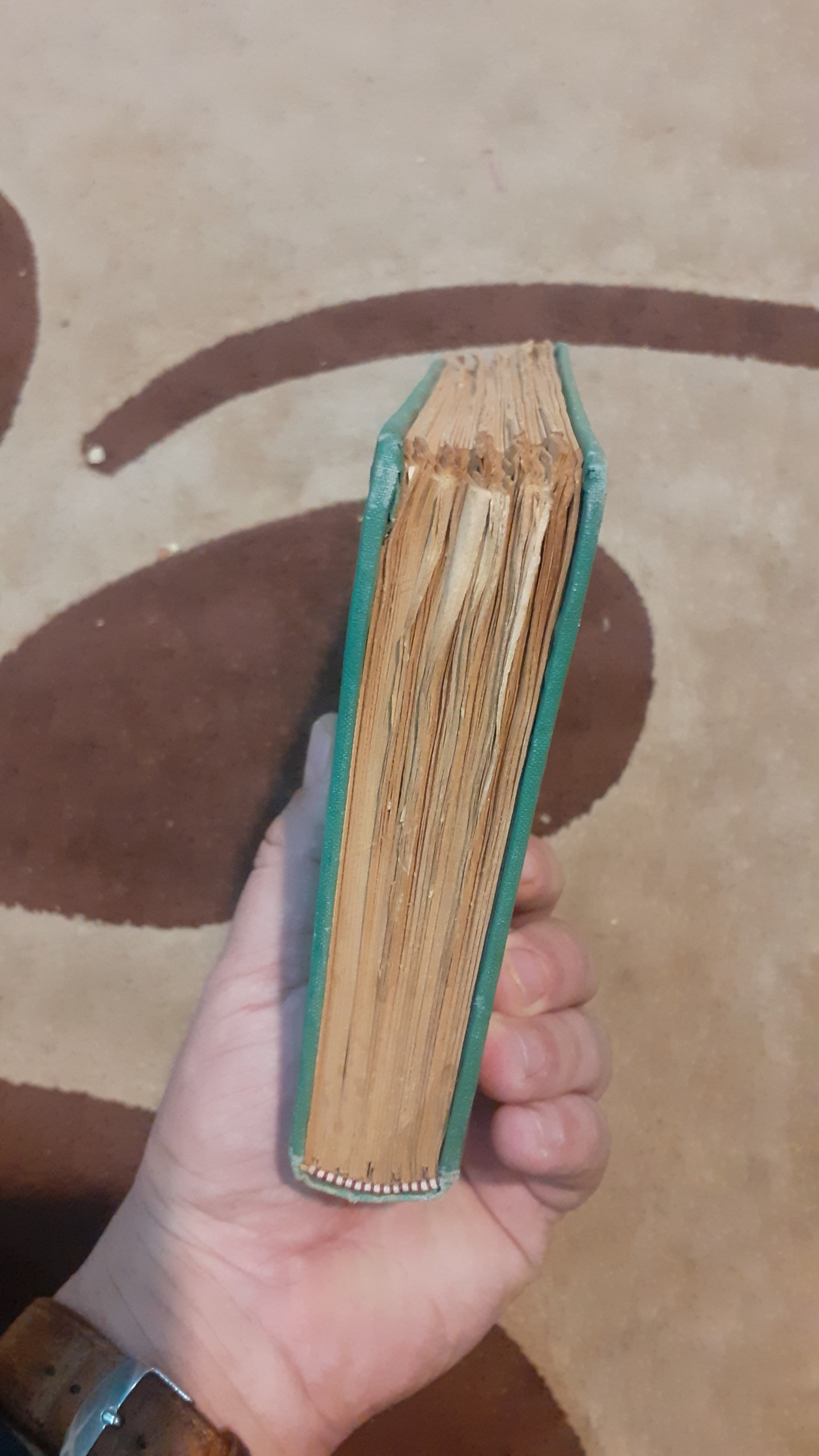 جلد سخت. کتاب کاملا سالم و کامل می باشد.فقط عطف هآی کتاب طبق عکس 2 و 3 را طبق تصویر ببینید که تاثیری روی کتاب نگذاشته.