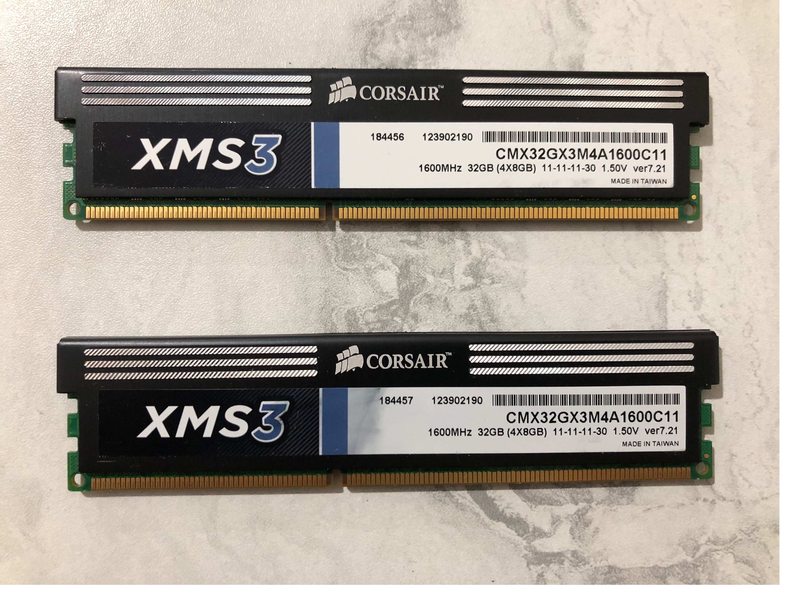 2 عدد رم 8 گیگ DDR3  برند کورسیر مدل  Corsair XMS3 1600MHz CL11 با زمان تاخیر CL11 اورجینال و اصلی مجهز به هیت سینک آلومینیومی جهت خنک سازی با سرعت کارکرد 1600 مگاهرتز کاملا سالم و تست شده روی سیستم و همچنین با نرم افزار مخصوص مطابق تصاویر