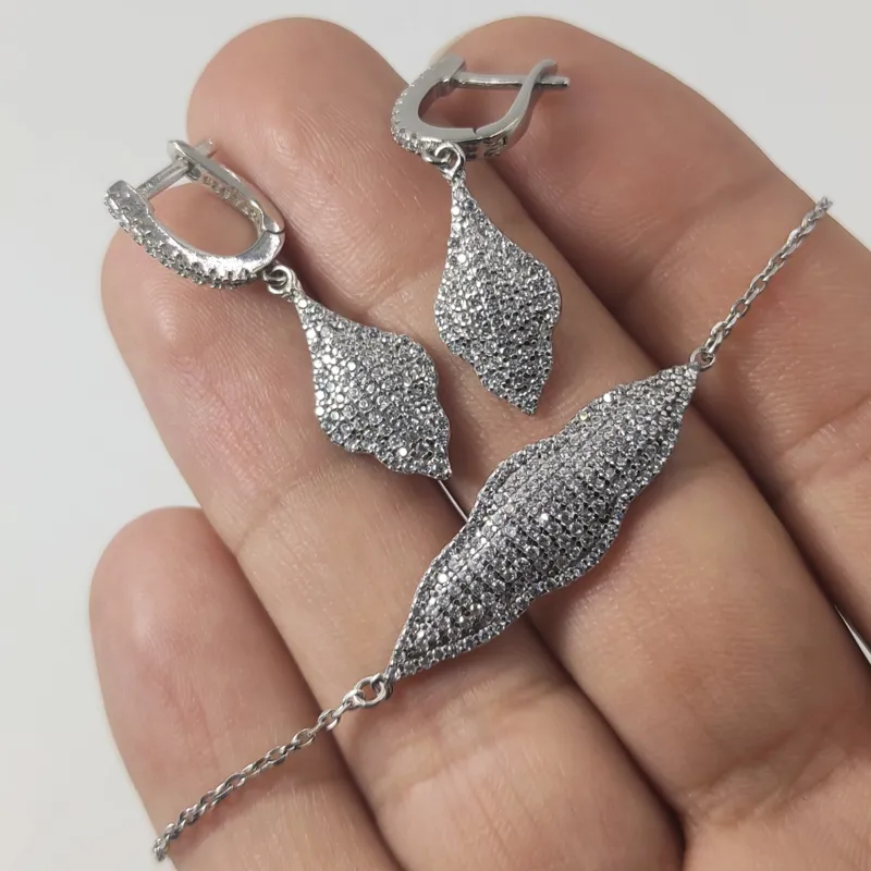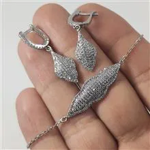 نیم ست نقره عیار 925 (مخراجکاری نگین های کریستالی)