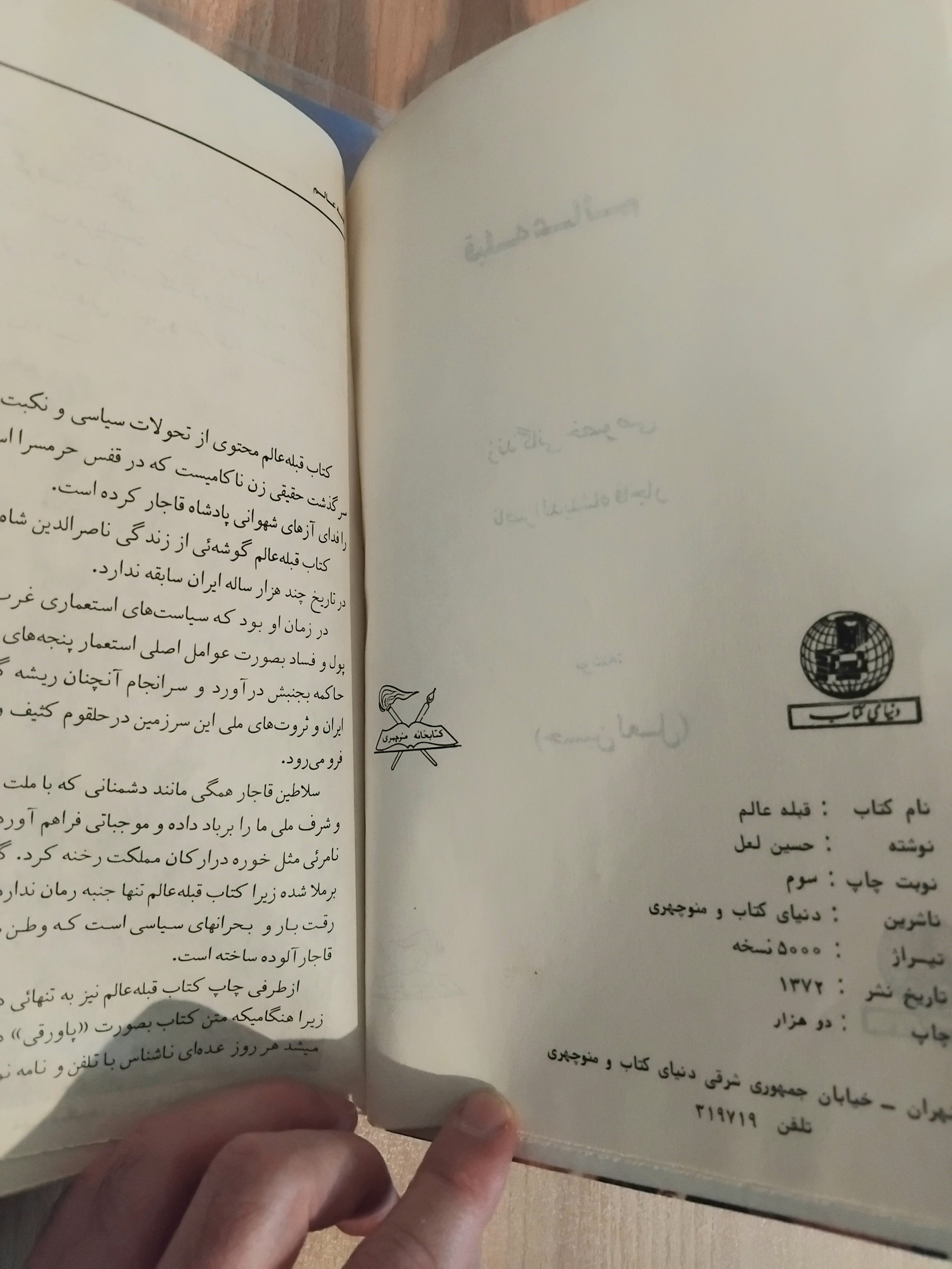 چاپ سوم، 2000 نسخه، 1372، انتشارات دنیای کتاب