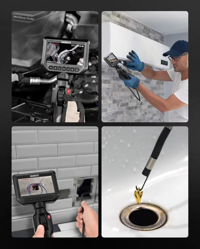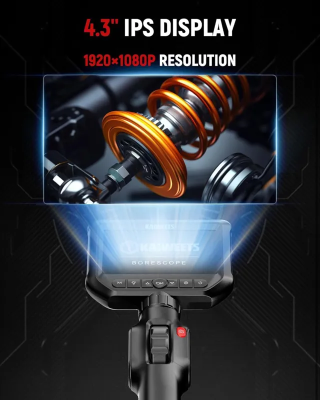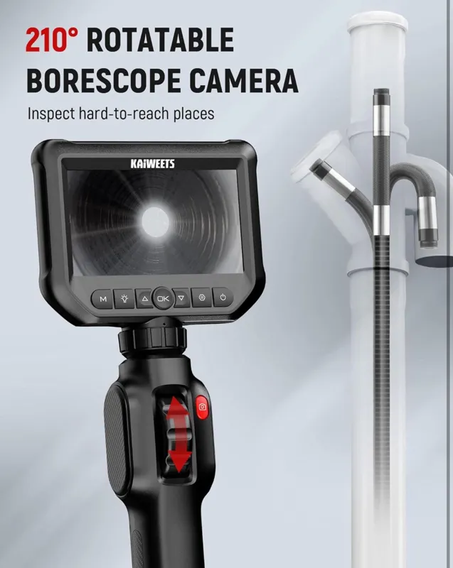 بروسکوپ مفصلی دو طرفه 210 درجه: با بروسکوپ مفصلی پیشرفته KAIWEETS که دارای قابلیت چرخش دو طرفه 210 درجه است، به راحتی در فضاهای تنگ حرکت کنید. این به شما امکان میدهد تا با دقت به مناطق دشوار دسترسی پیدا کرده و آنها را بررسی کنید. چه مکانیک خودرو باشید و چه بازرسیهای پیچیده انجام دهید، این بروسکوپ تضمین میکند که میتوانید دقیقاً آنچه را که نیاز دارید، حتی در فضاهای محدود، ببینید.