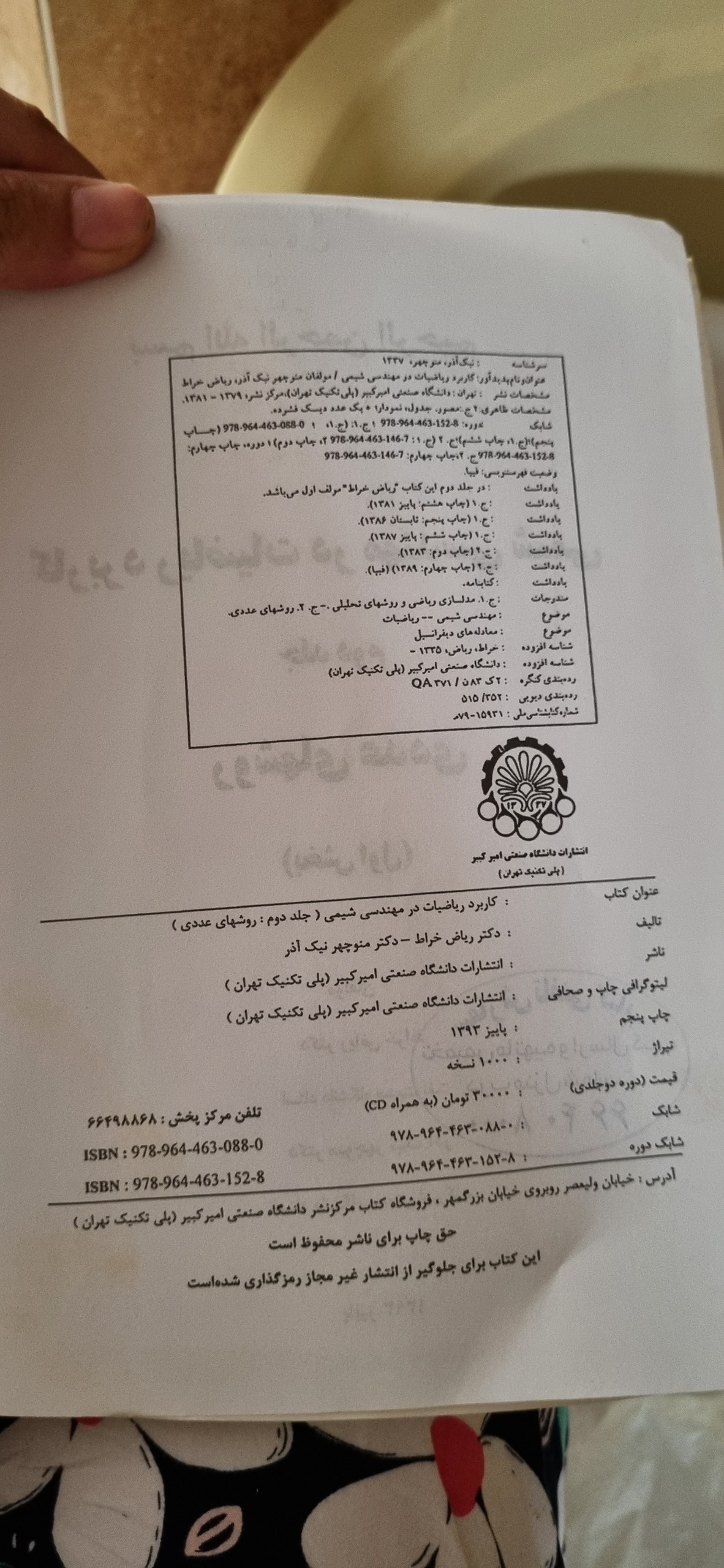کابرد ریاضیات در مهندسی شیمی جلد دوم: رئشهای عددی