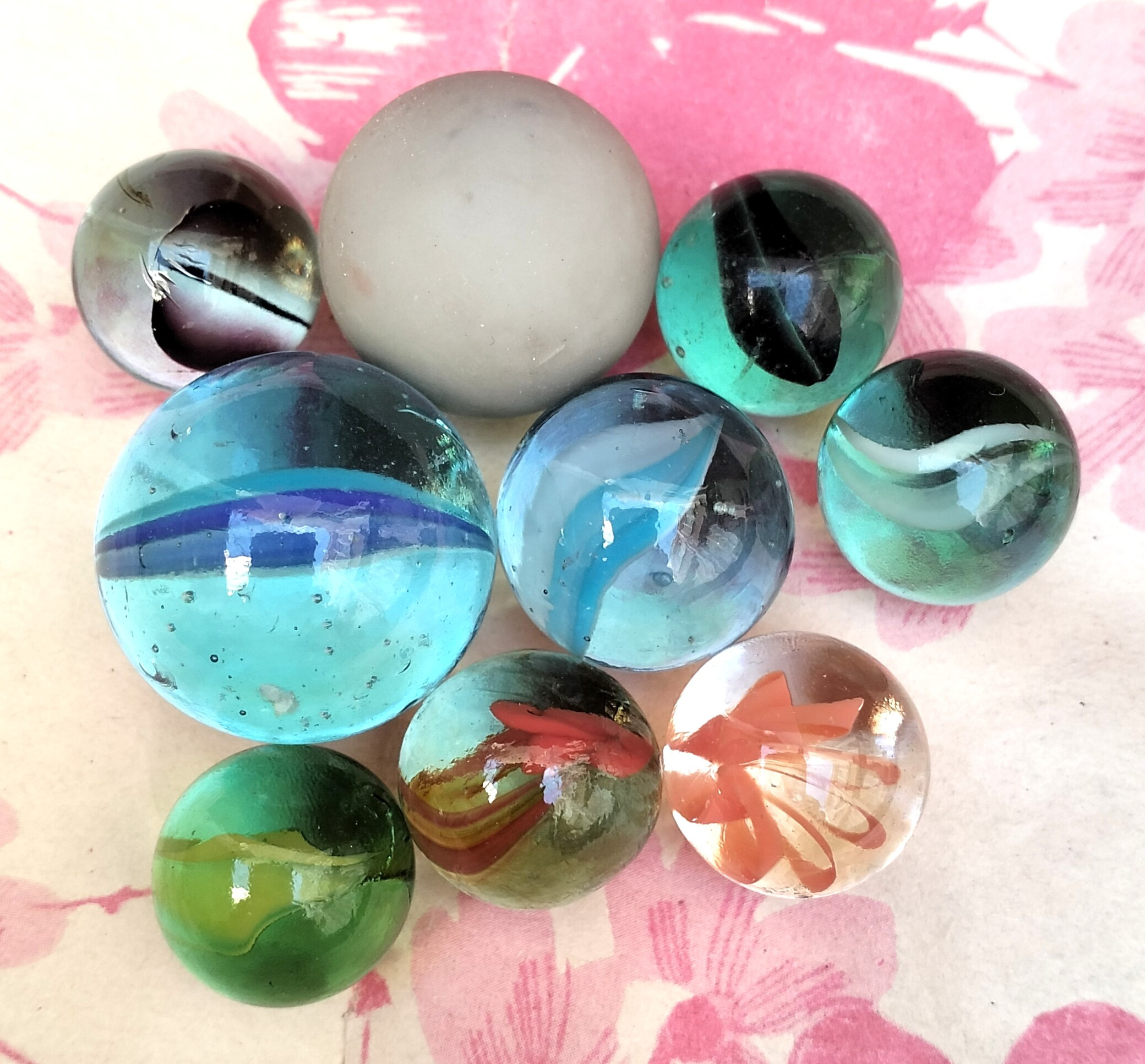 تیله بازی ، اصل و کلکسیونی ، در حد نو و آکبند قدیمی ، 9 عدد در سایزهای مختلف ، ته انباری ، مطابق عکسها