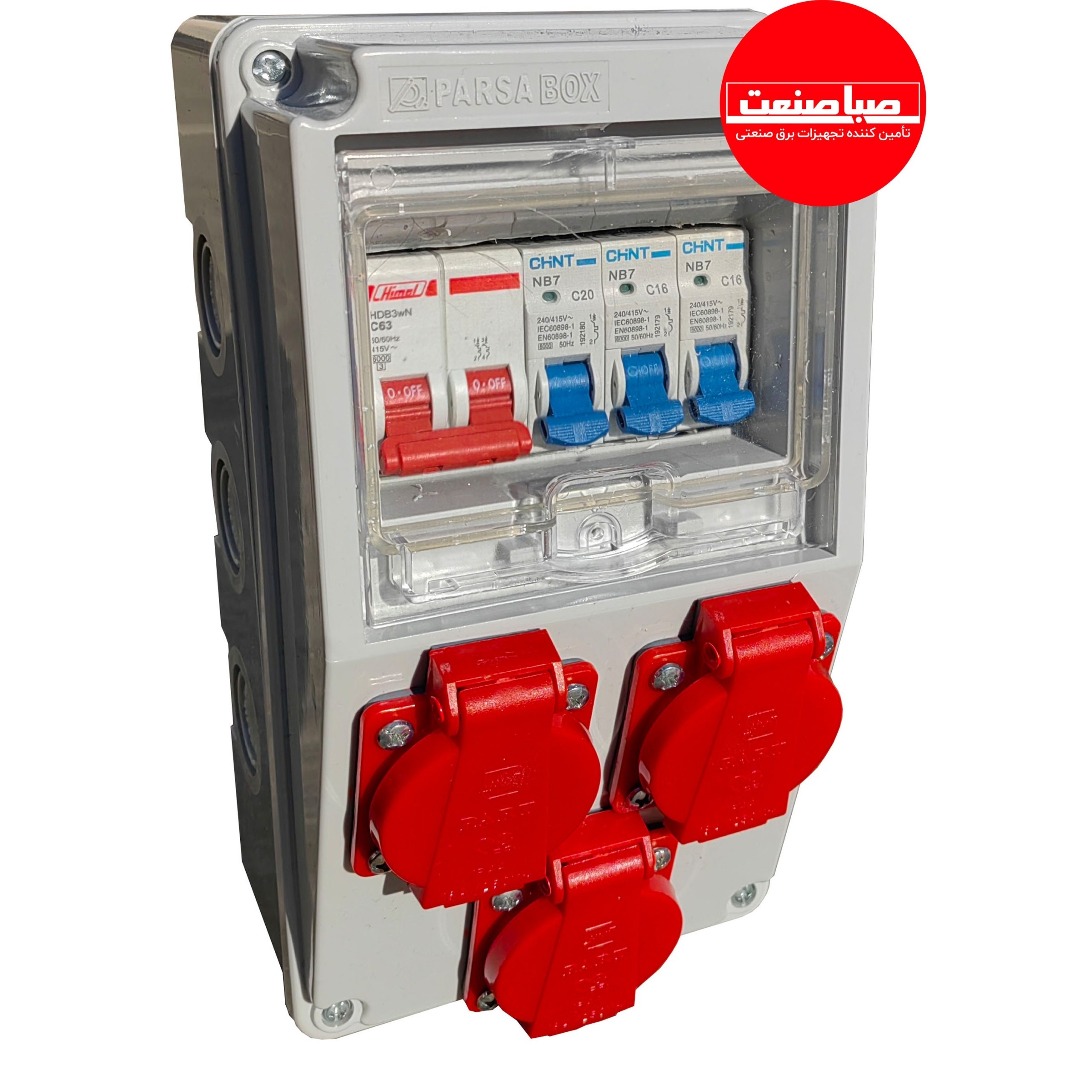 دارای 3 عدد پریز 16 آمپر صنعتی