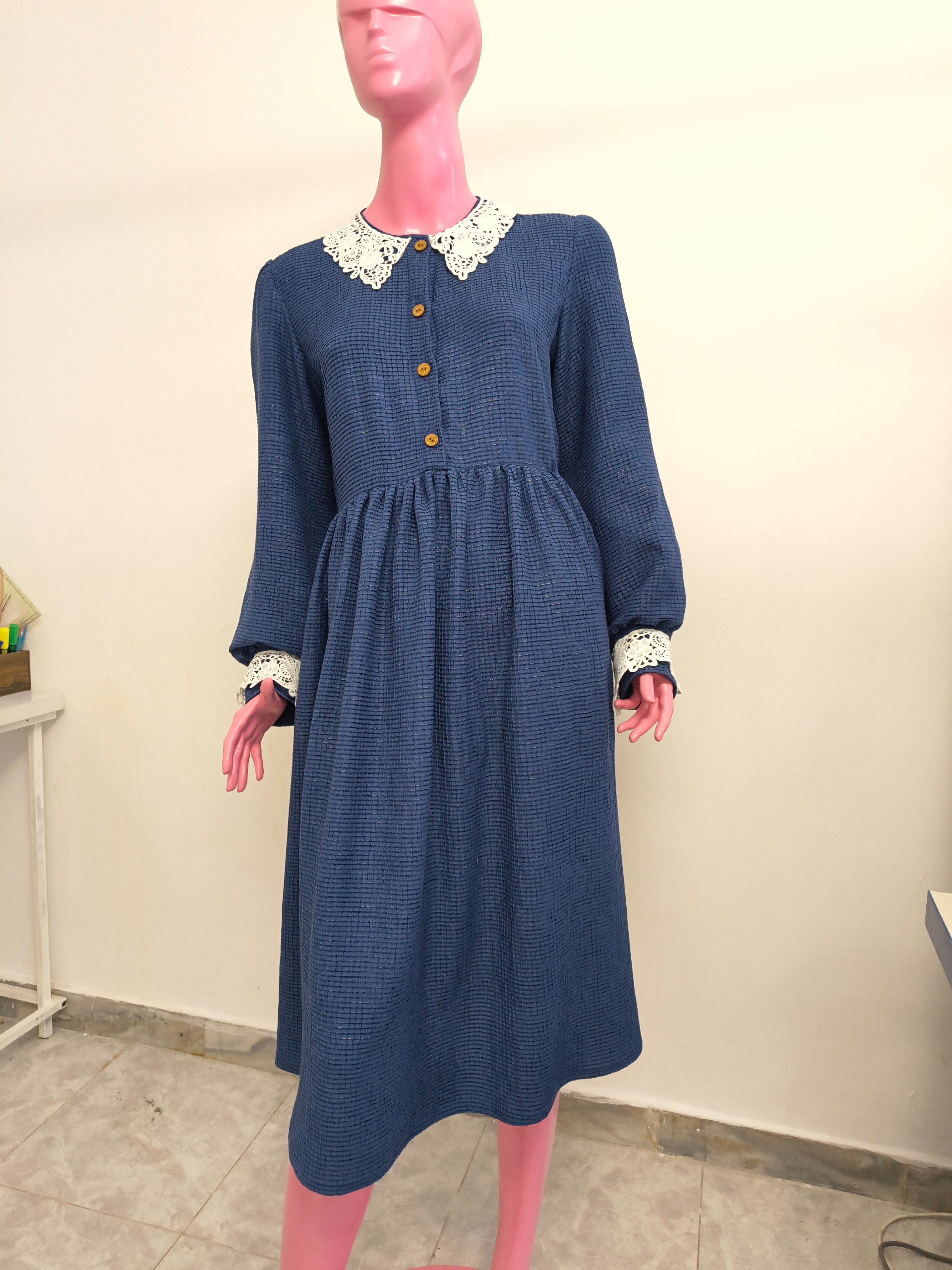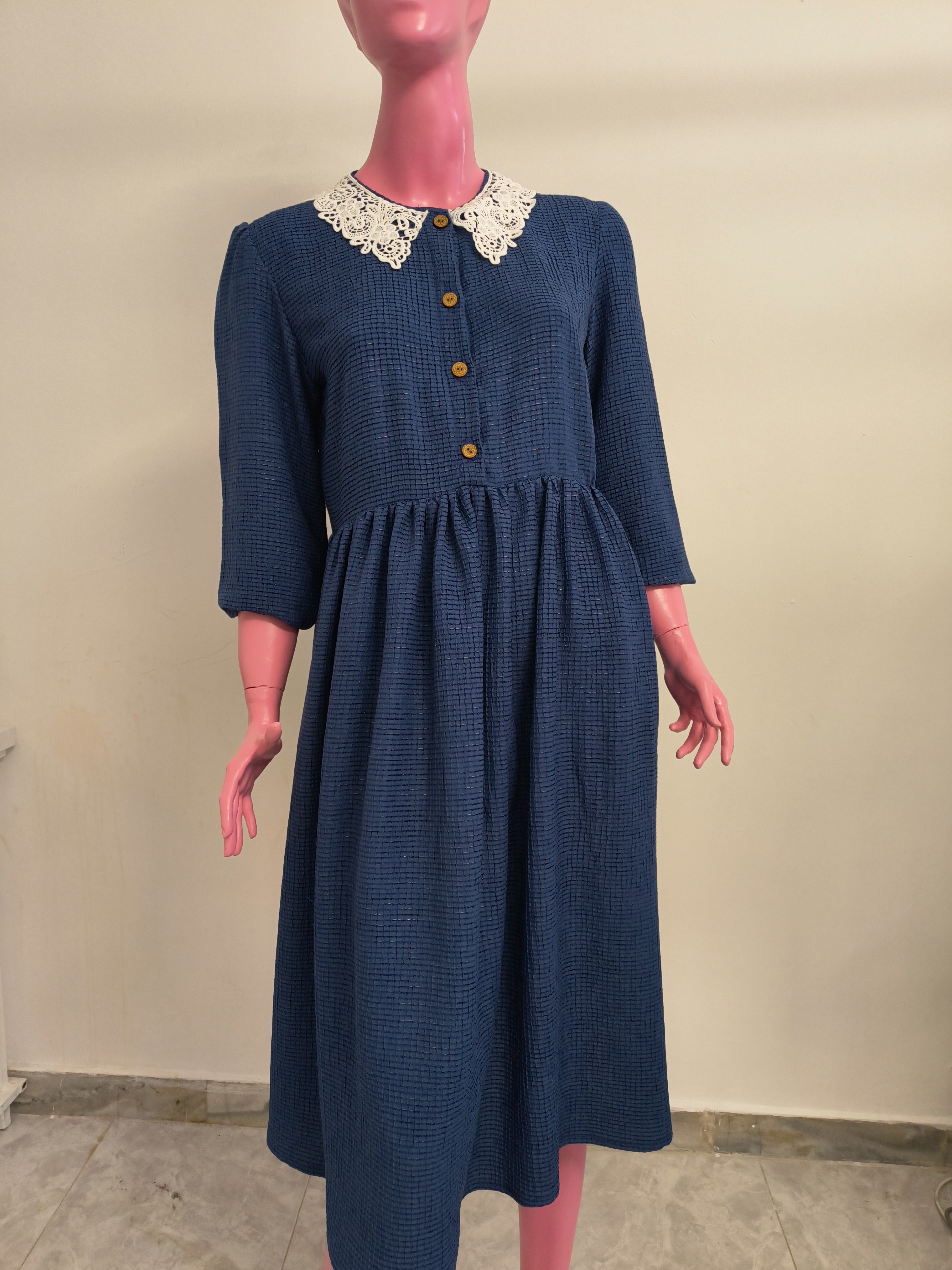 پیراهن زنانه وینتیج رنگ سورمه ای