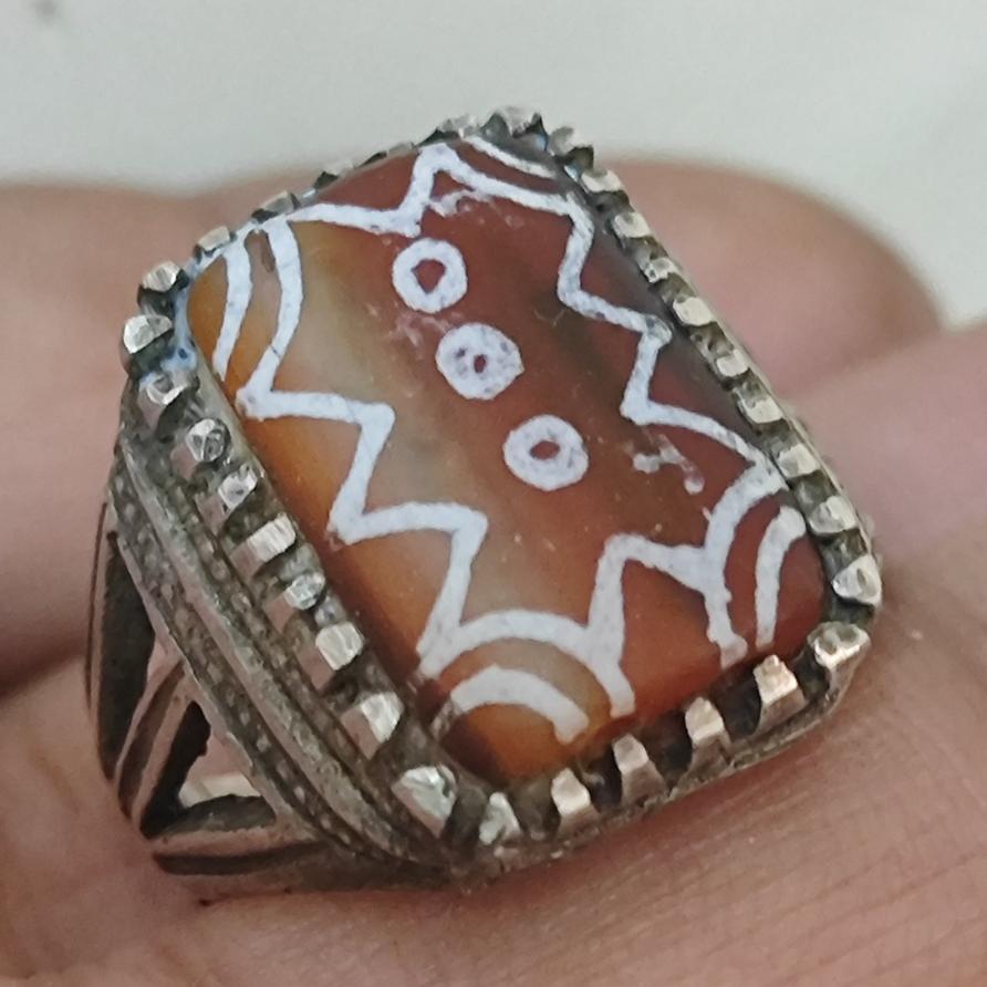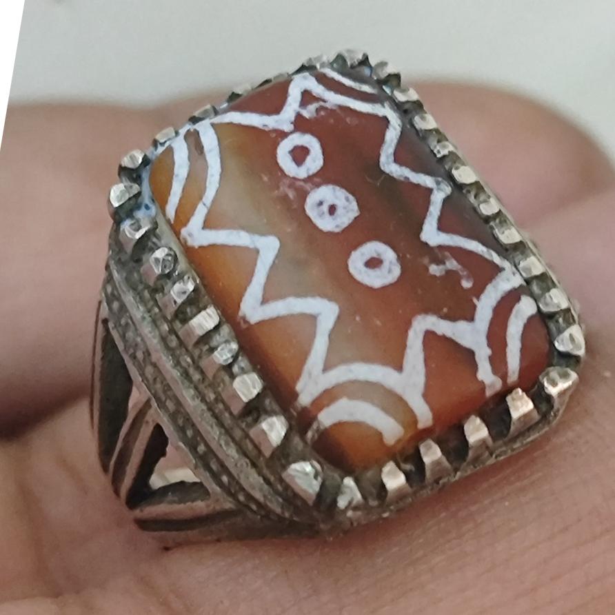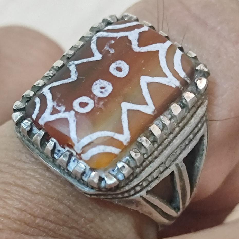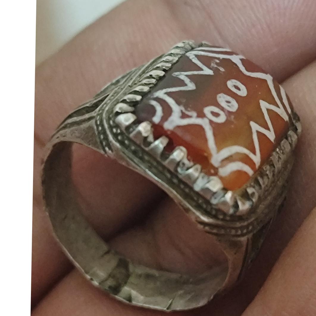 انگشتر قدیمی «مهره باستانی» نقش بیاضی (پیازی)
