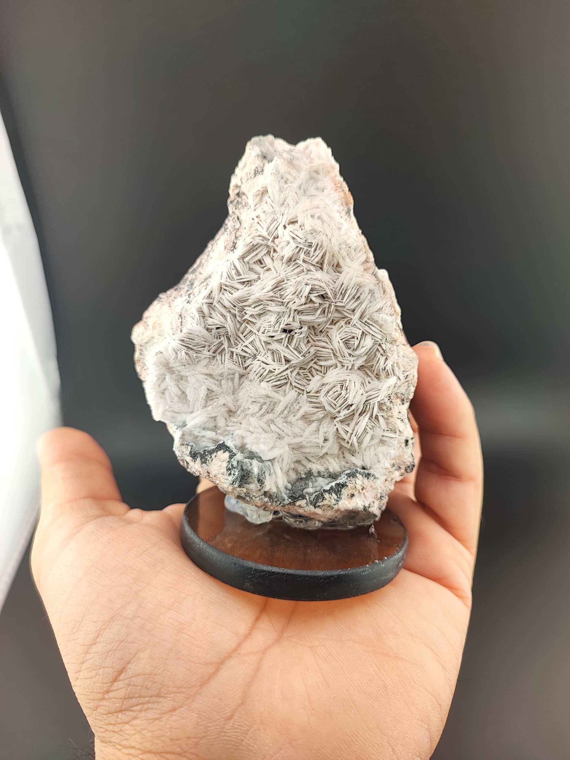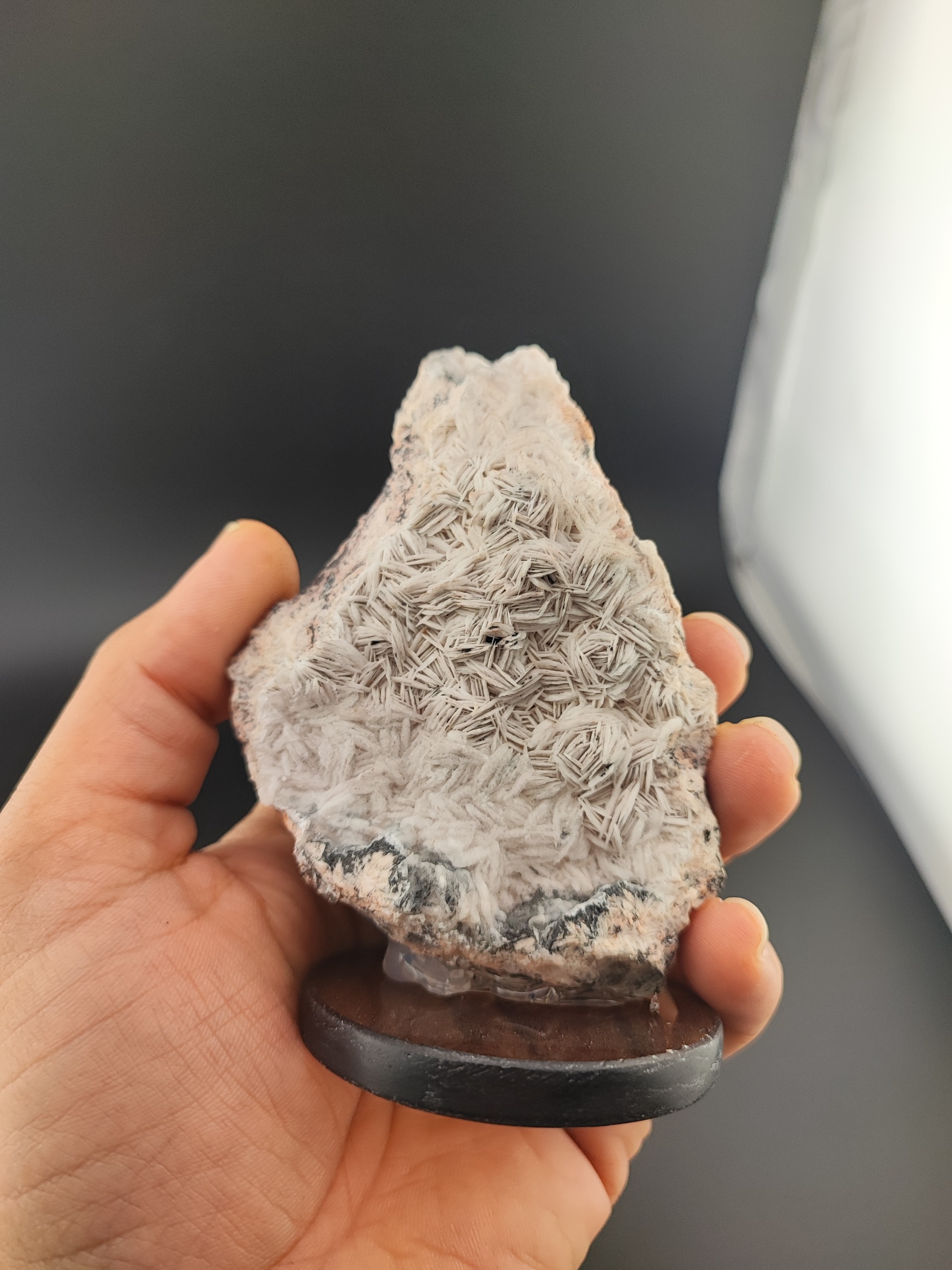 نمونه راف رز باریت بسیار خوش بلور با پایه شیشه ای
