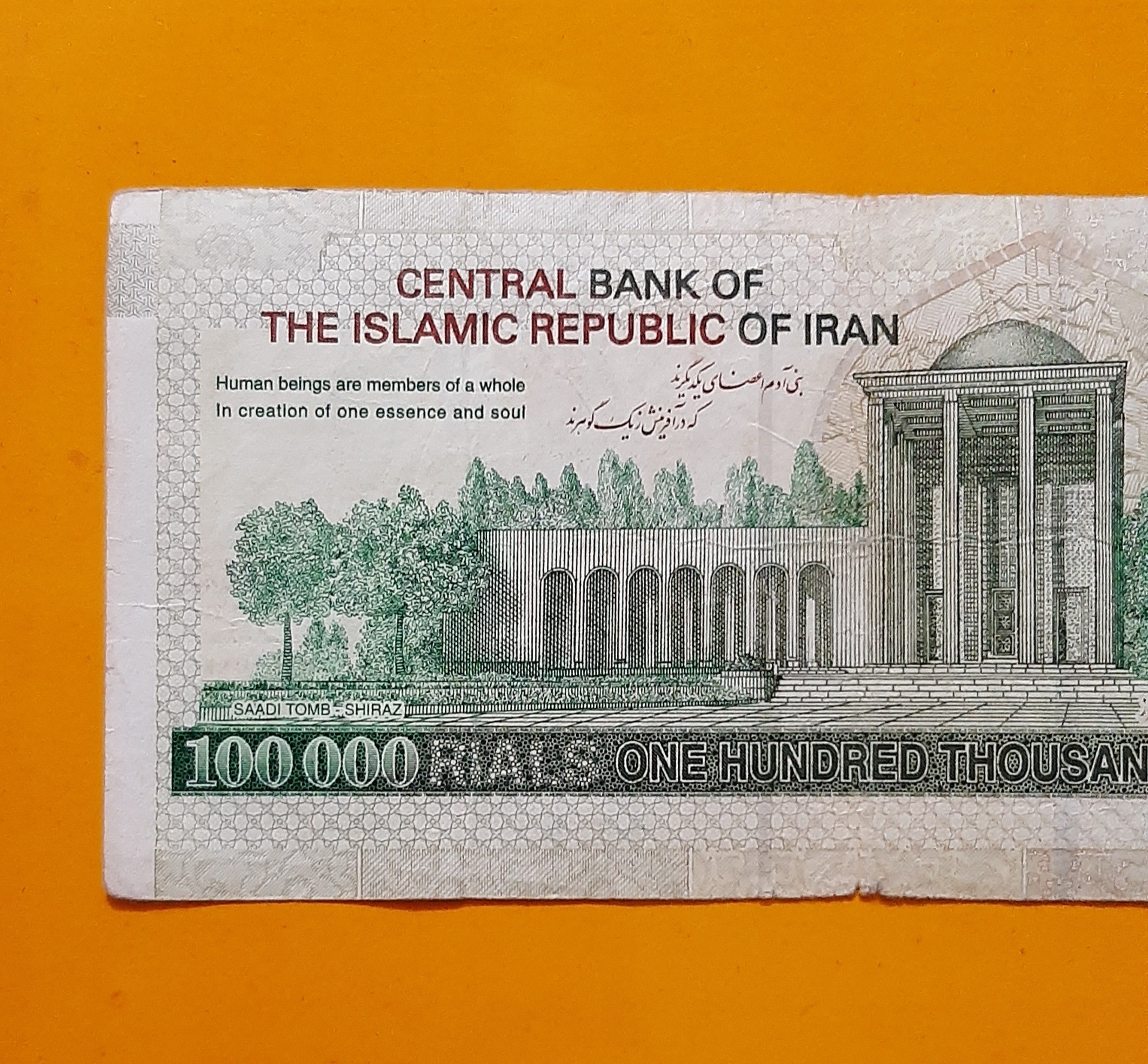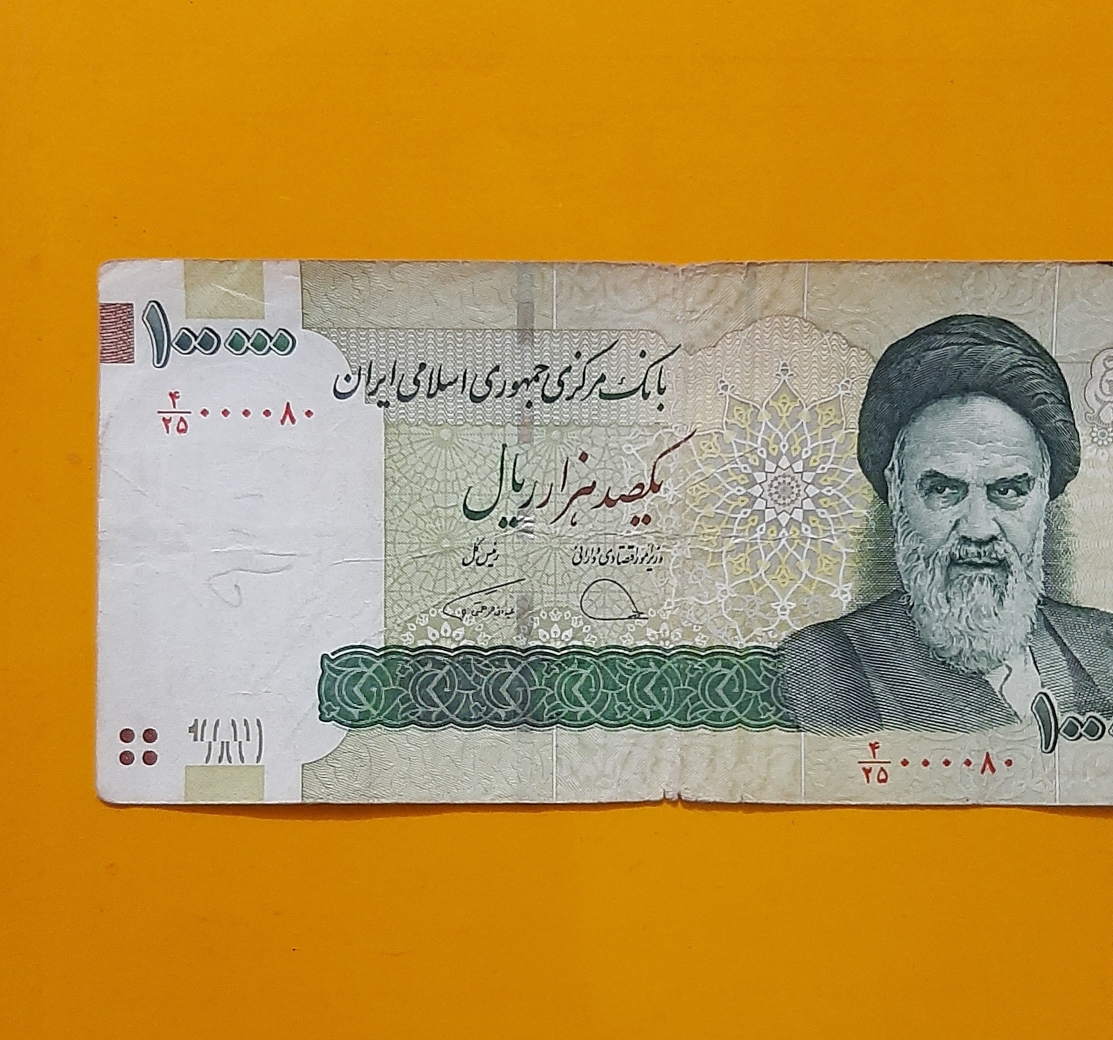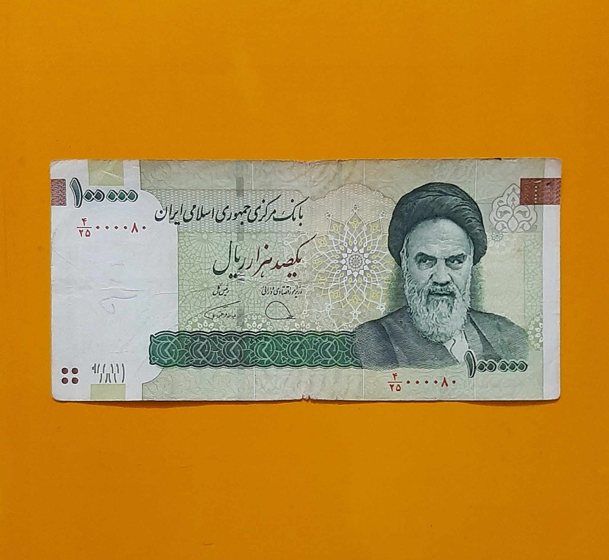 اسکناس 100000 ریال جمهوری شماره بسیار زیبا(کد107)