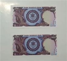 اسکناس100 ریالی پهلوی، پدر و پسر، بانکی ردیف، جفت3