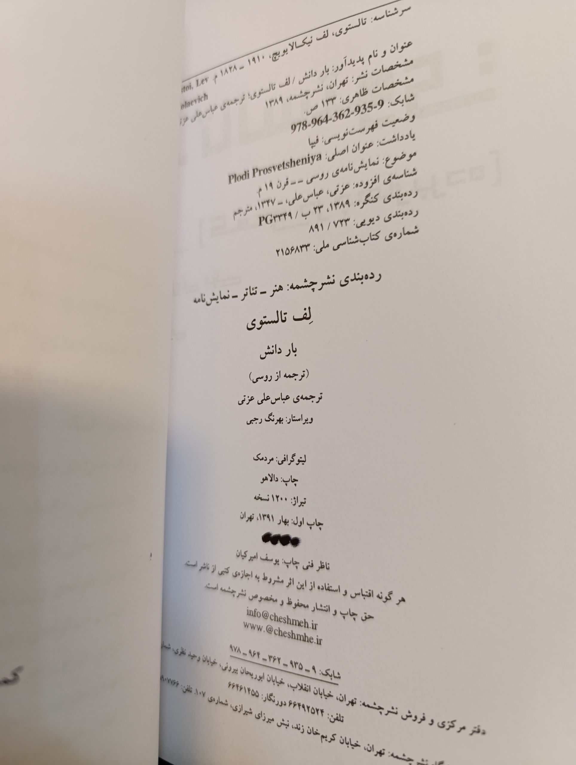 بار دانش تولستوی نشر چشمه