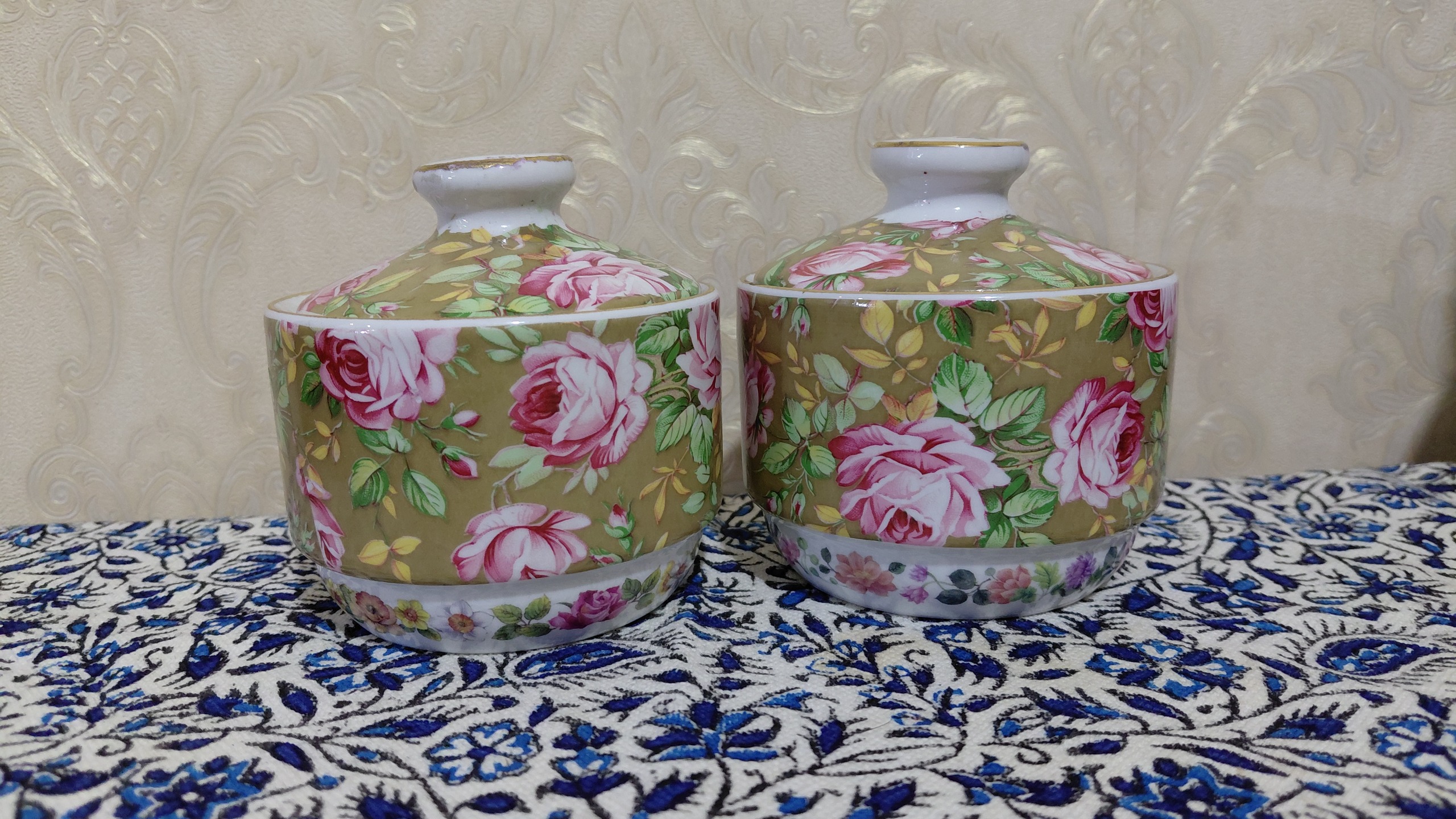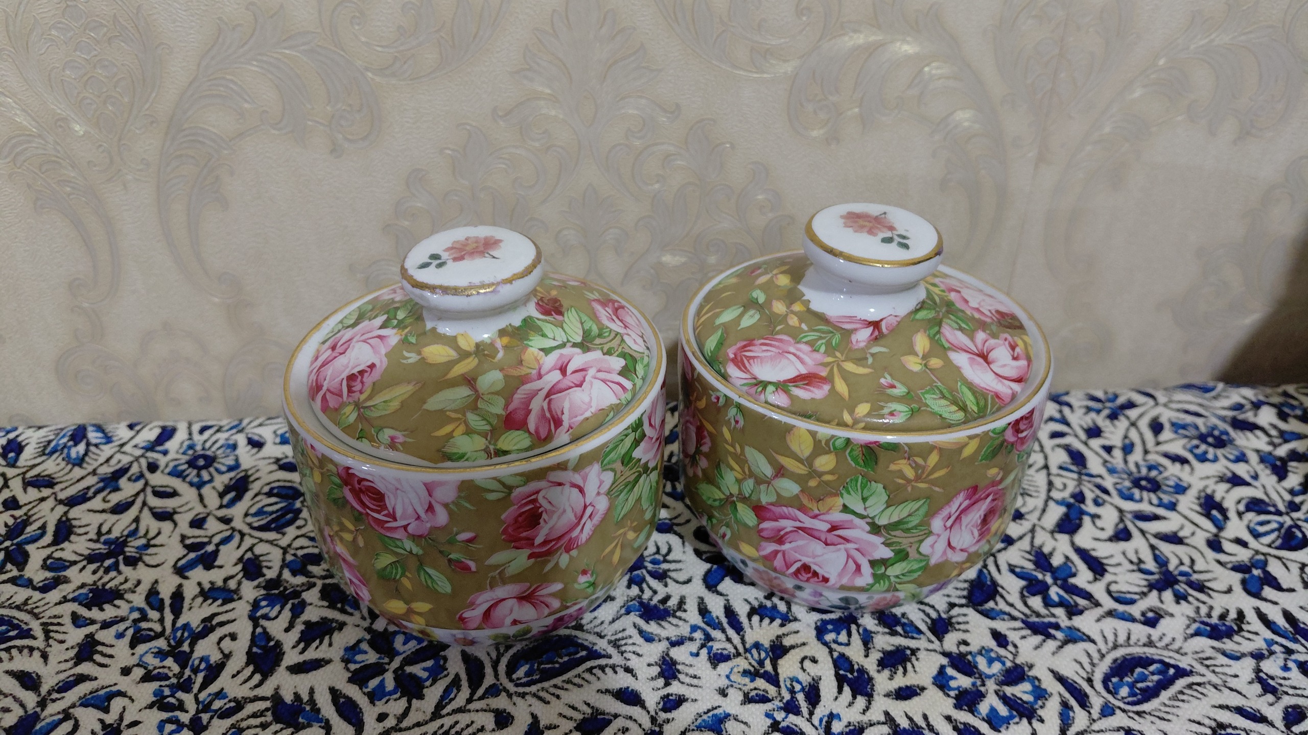 یک جفت قندان چینی گلدار کاملا نونو داخل کارتن.فروش بصورت جفت.