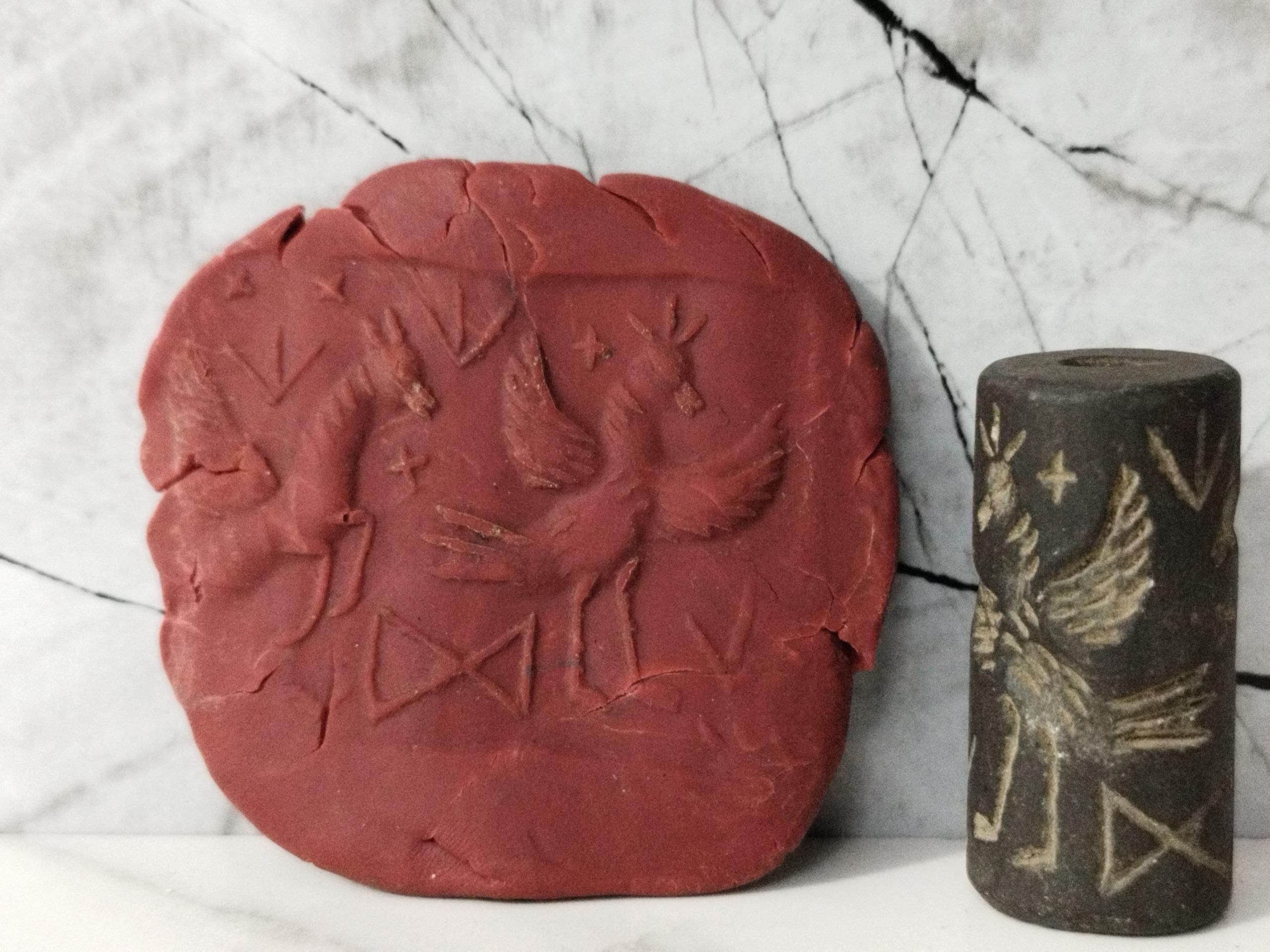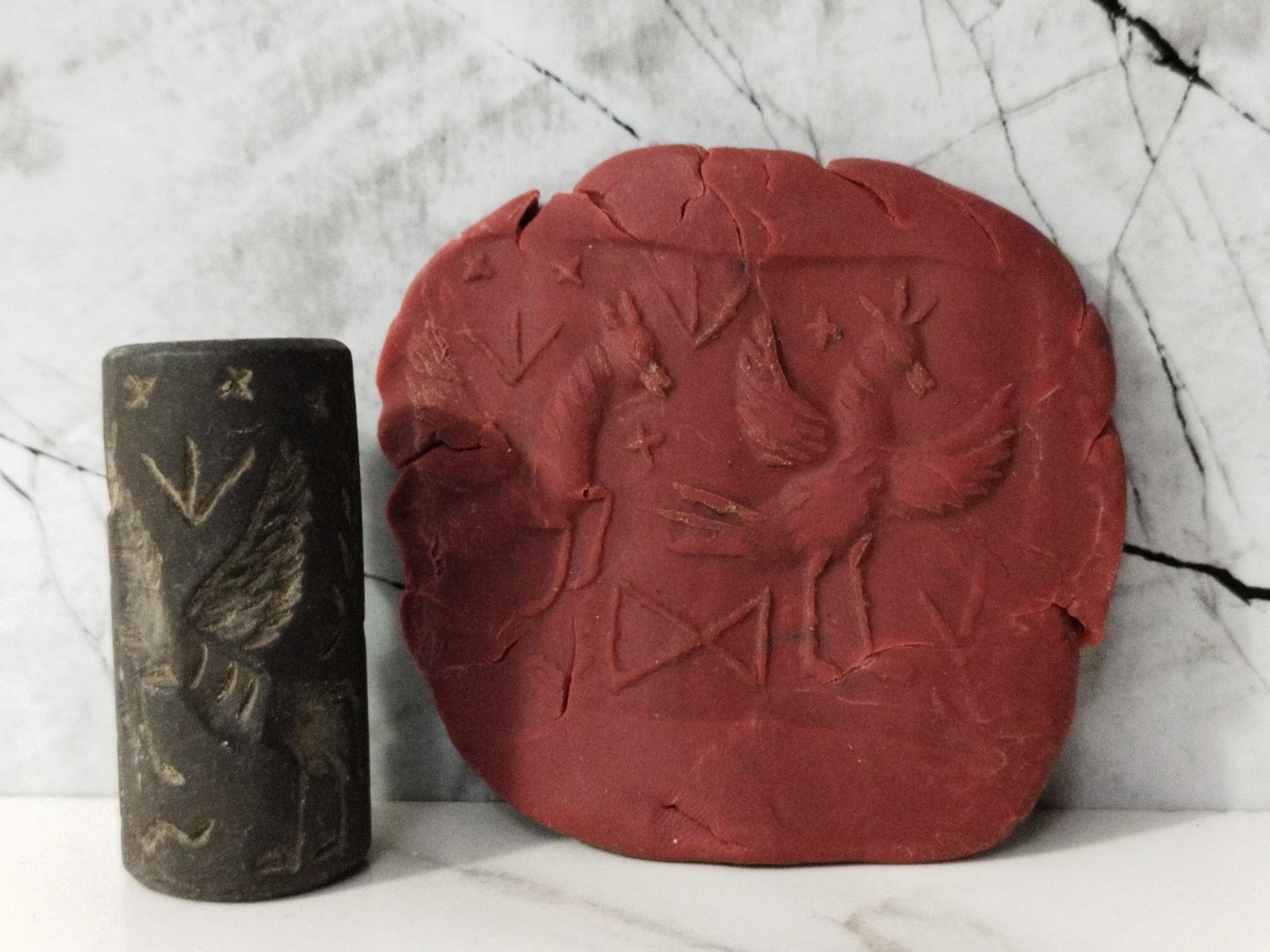 مهر لول استوانهای قدیمی نقش برجسته