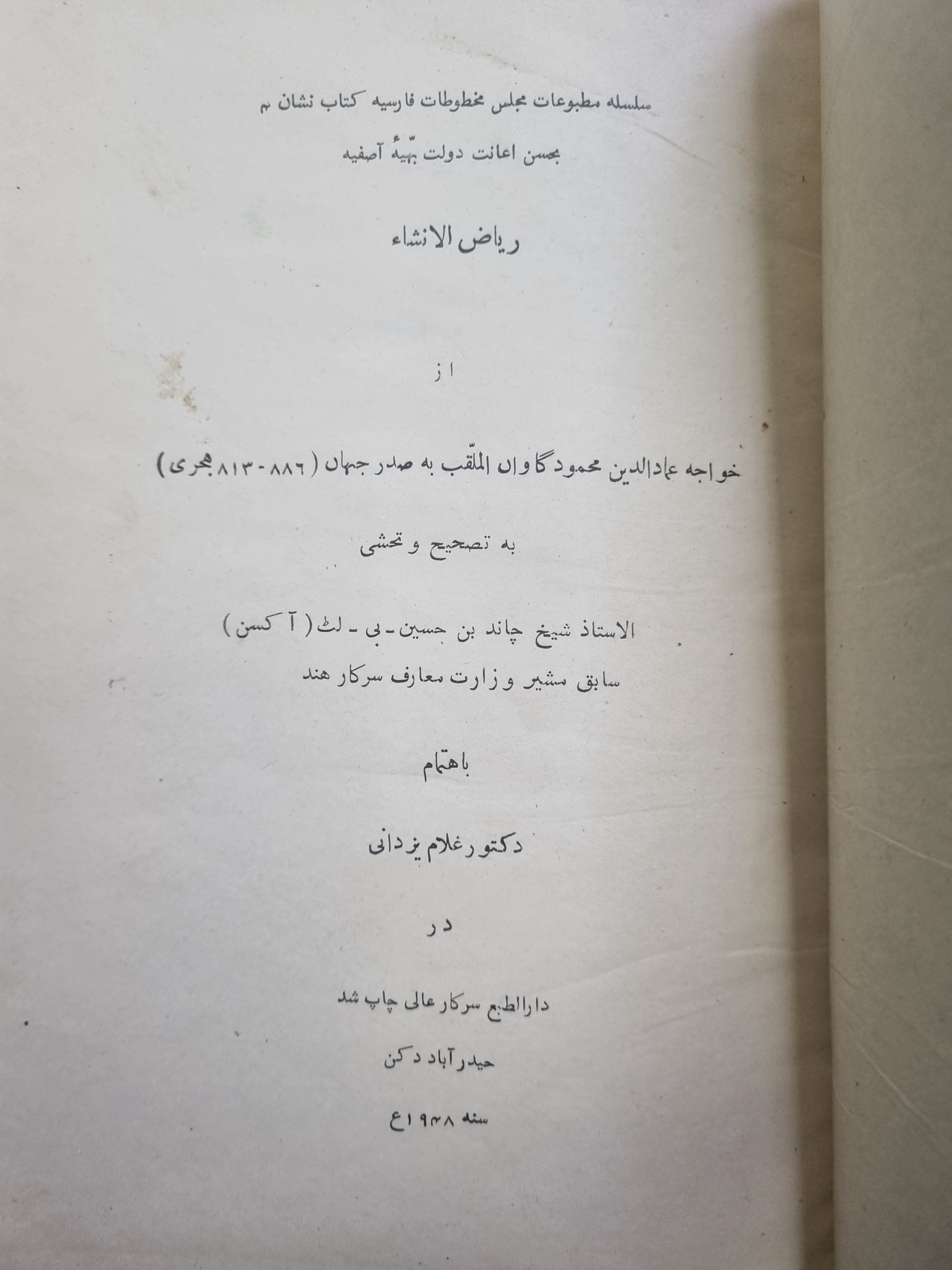 ریاض الانشاء /چاپ دکن حیدرآباد /نایاب / جلد اصلی
