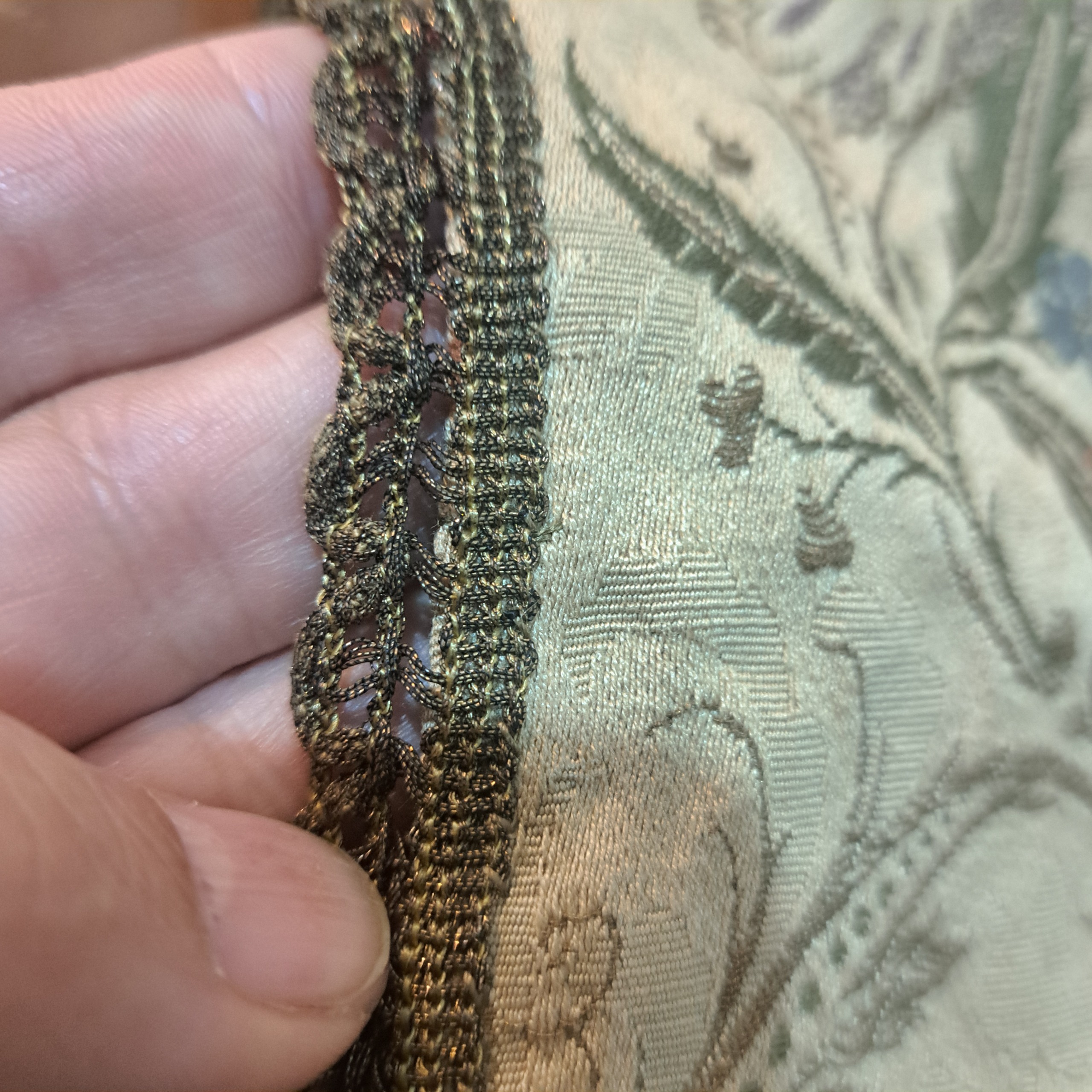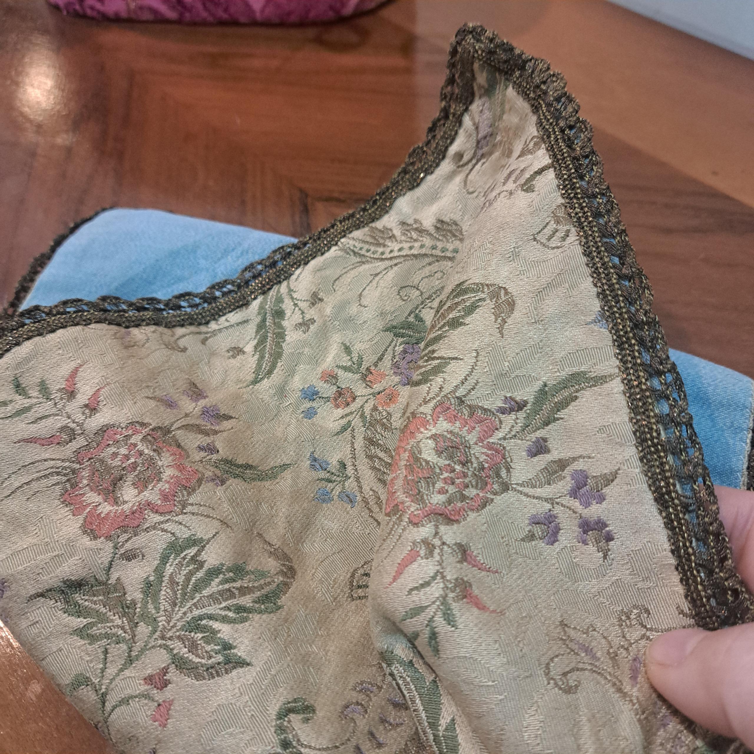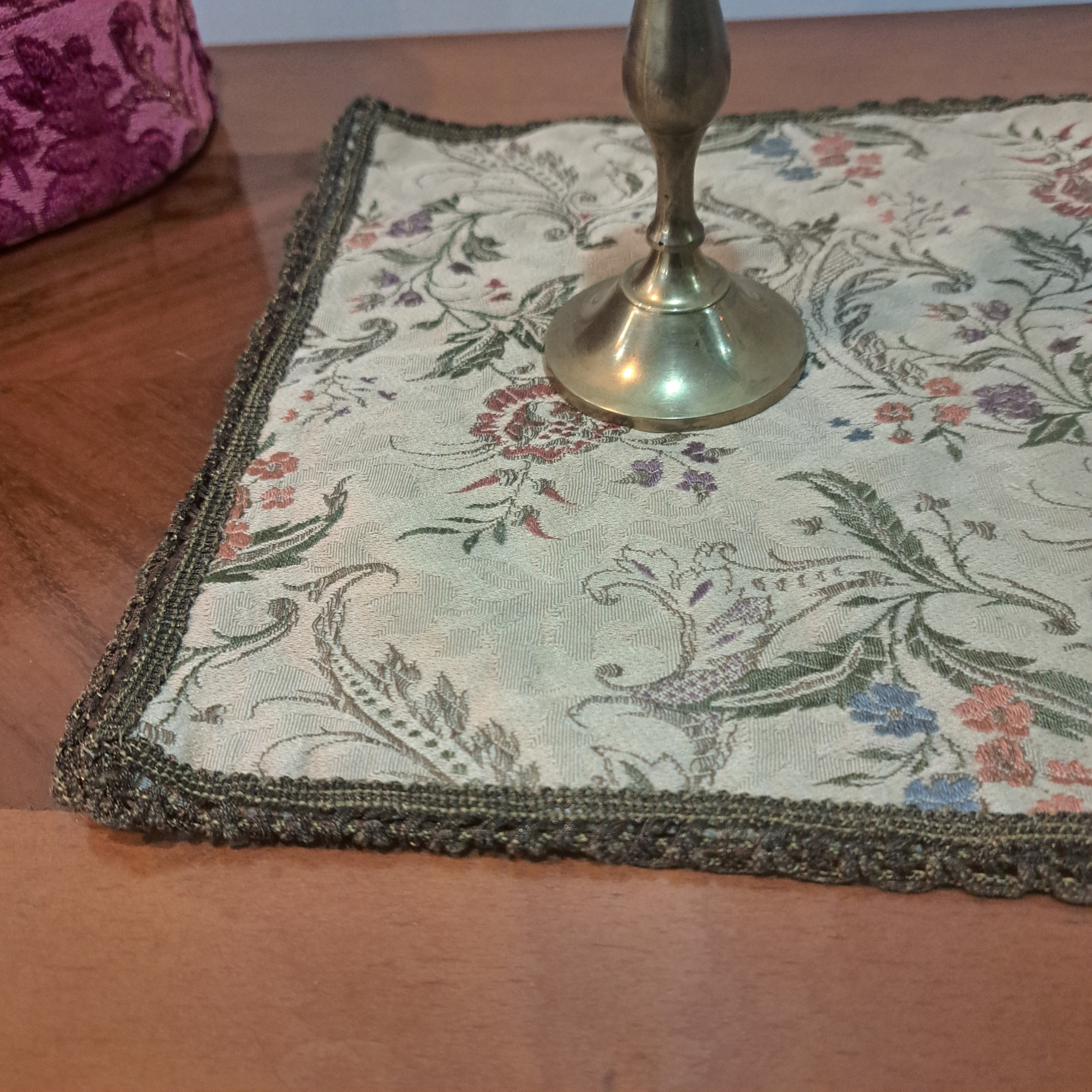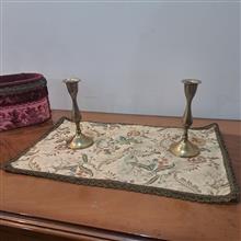 رومیزی قدیمی خارجی پارچه شنل سوزن دوزی ماشینی با یراق ظریف سیمی استر دار سالم و تمیز