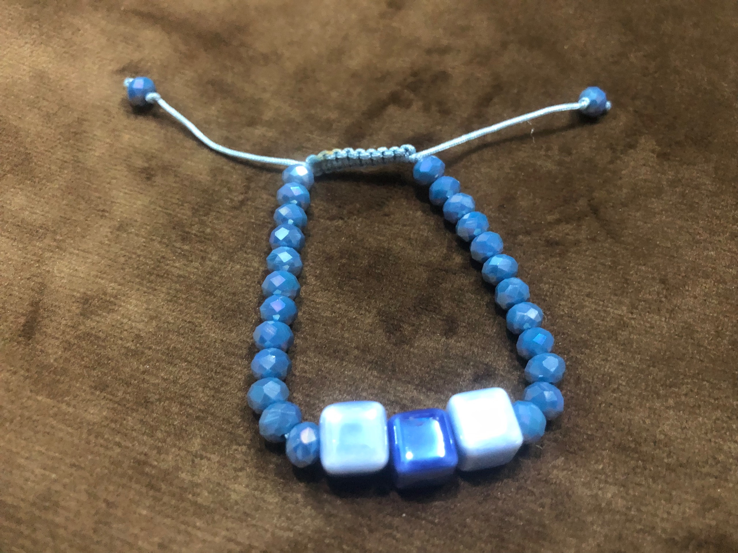 دستبند سنگ کریستال آبی. پلاک سرامیکی
