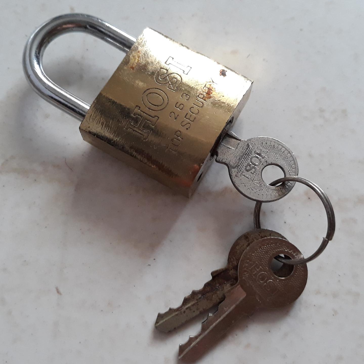 یک عدد قفل با 3 عدد کلید درست برابر با تصویر . اندازه قفل بدون حلقه 3 در 3 سانتی متر می باشد حدودی . سالم و کاربردی . وزن کالا با در نظر گرفتن بسته بندی و حدودی ذکر شده است .