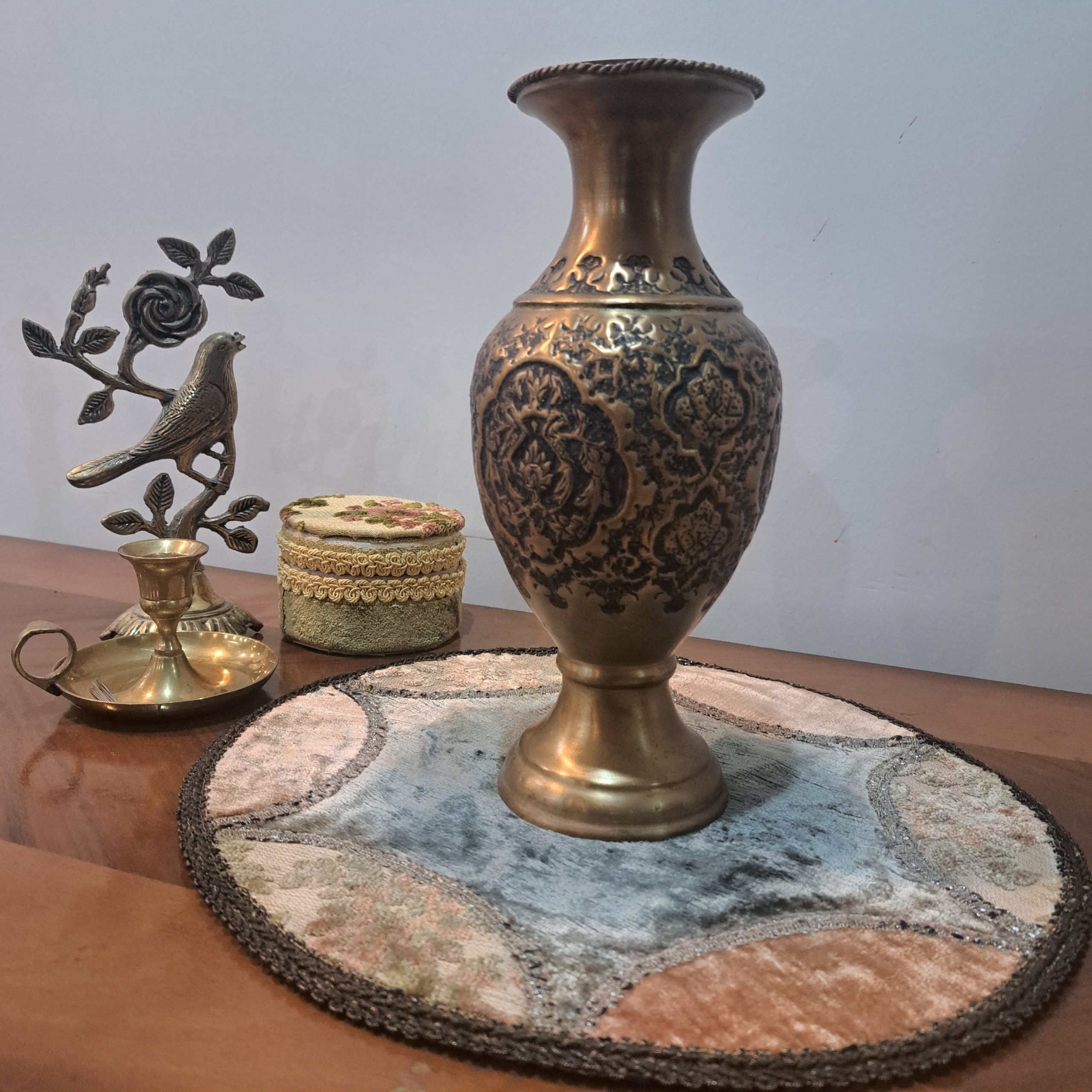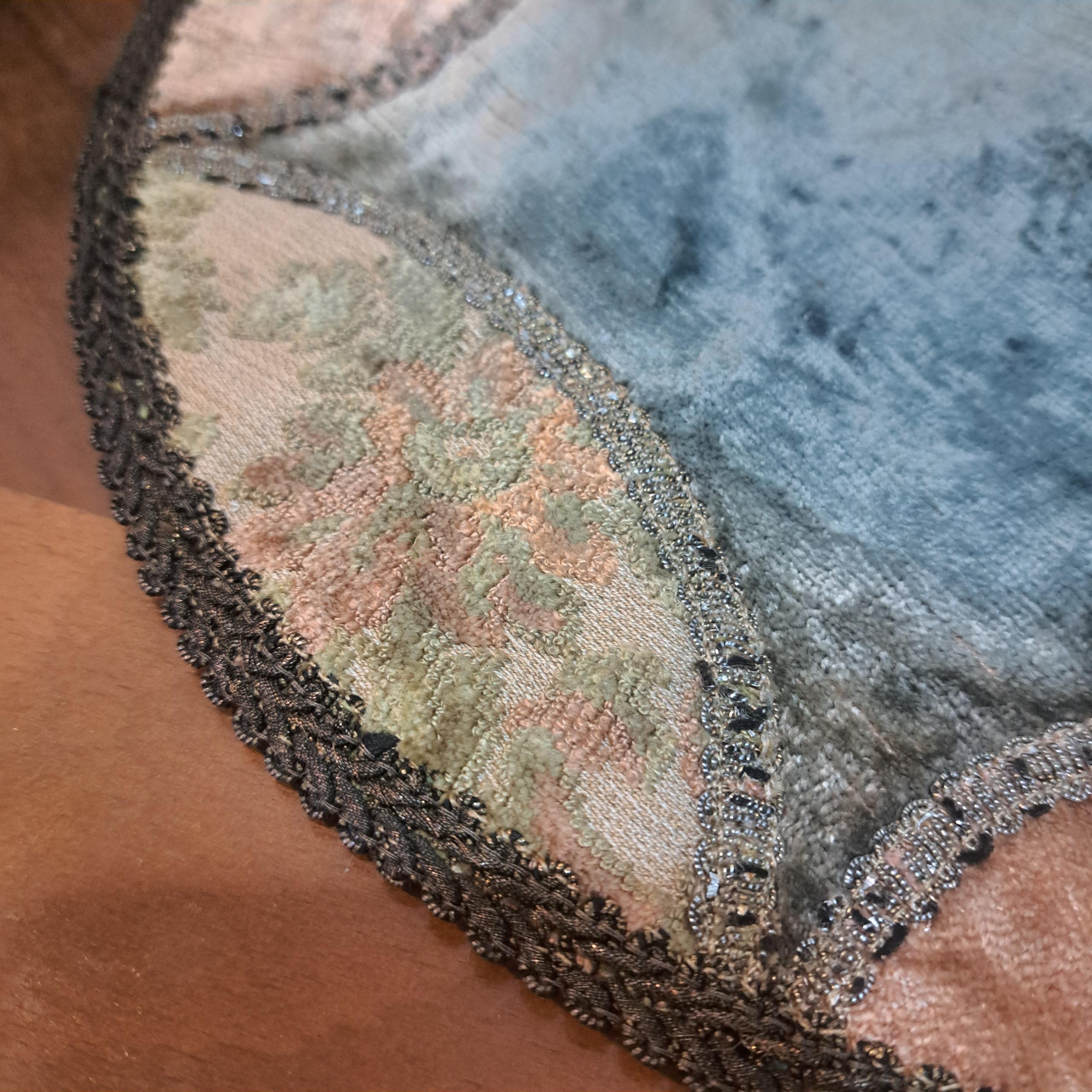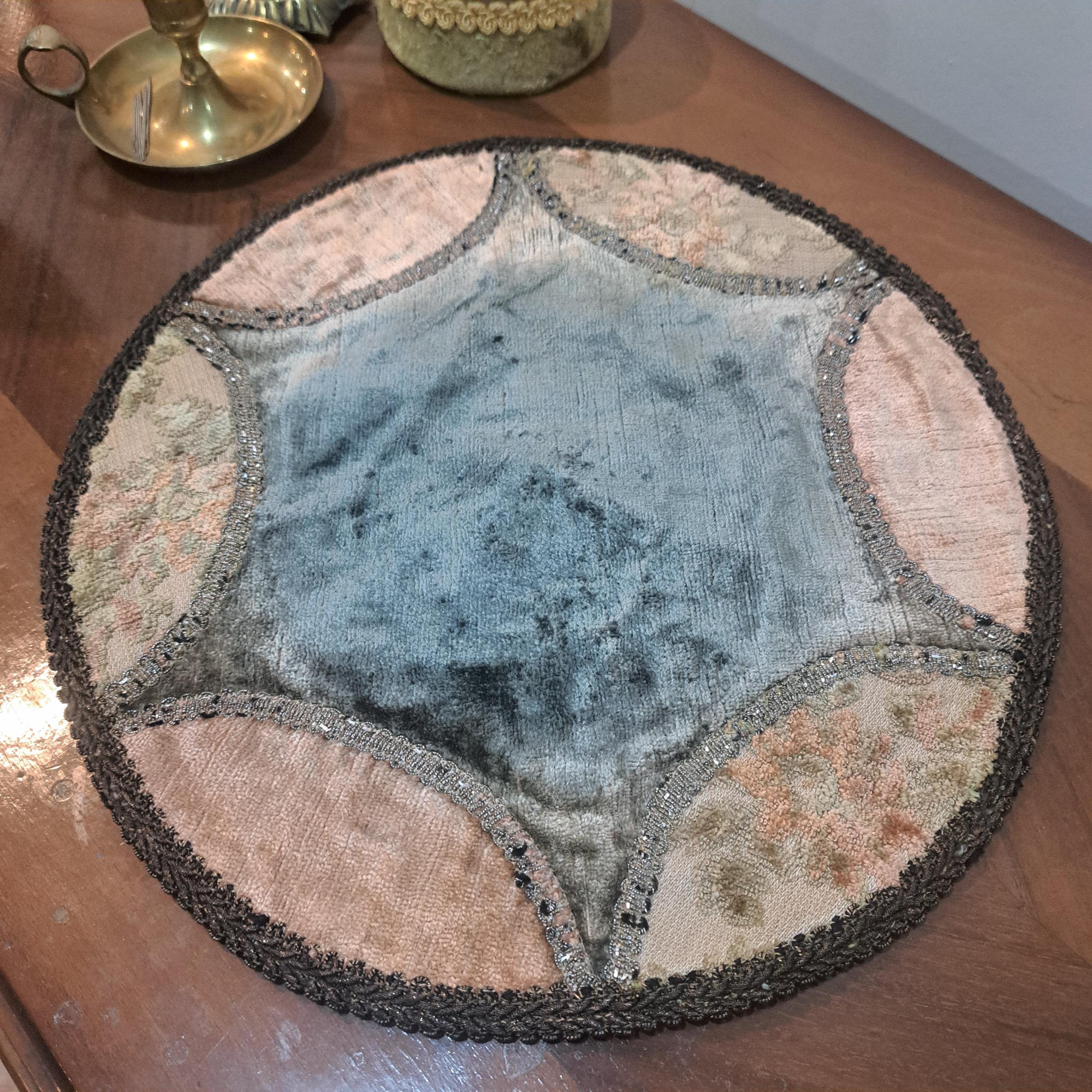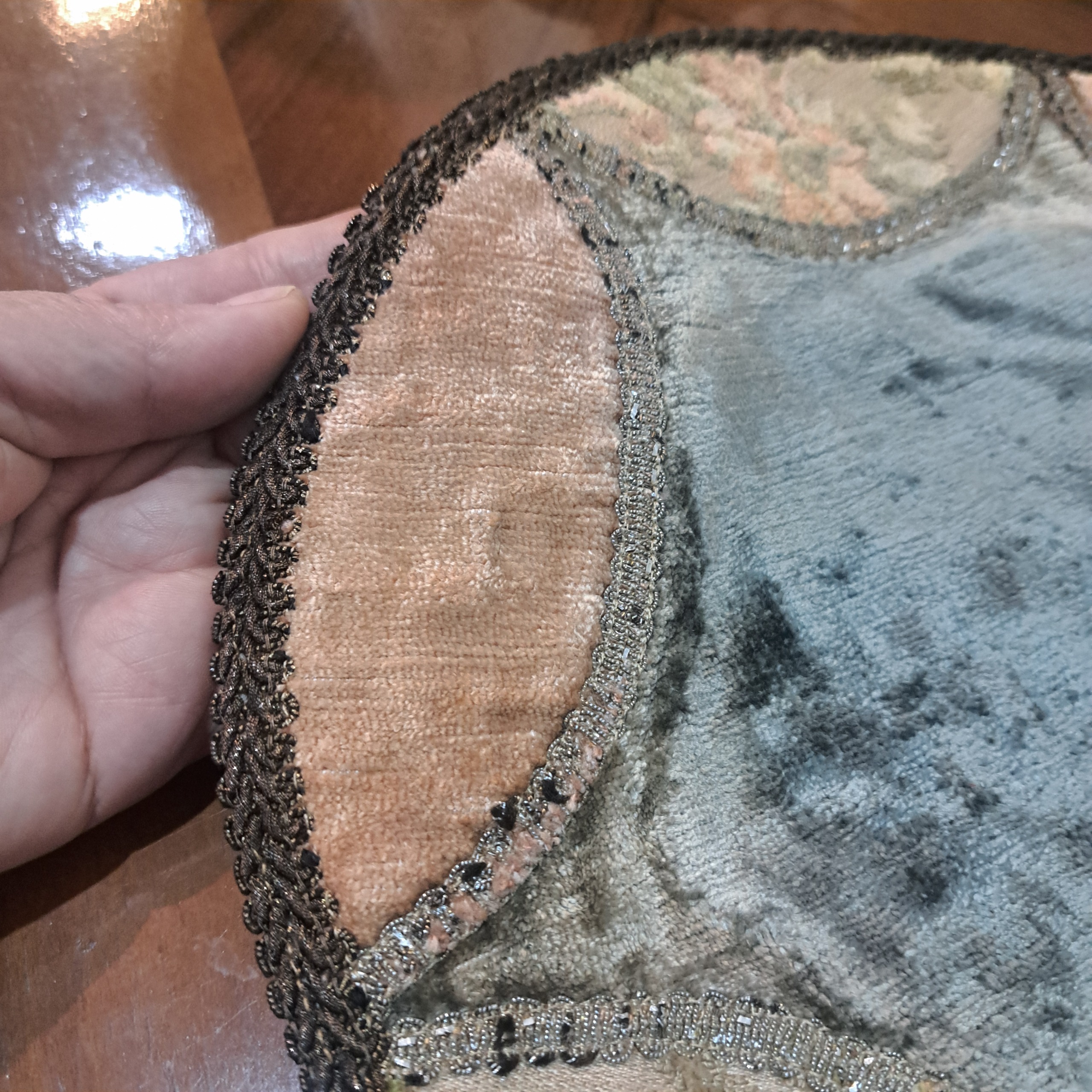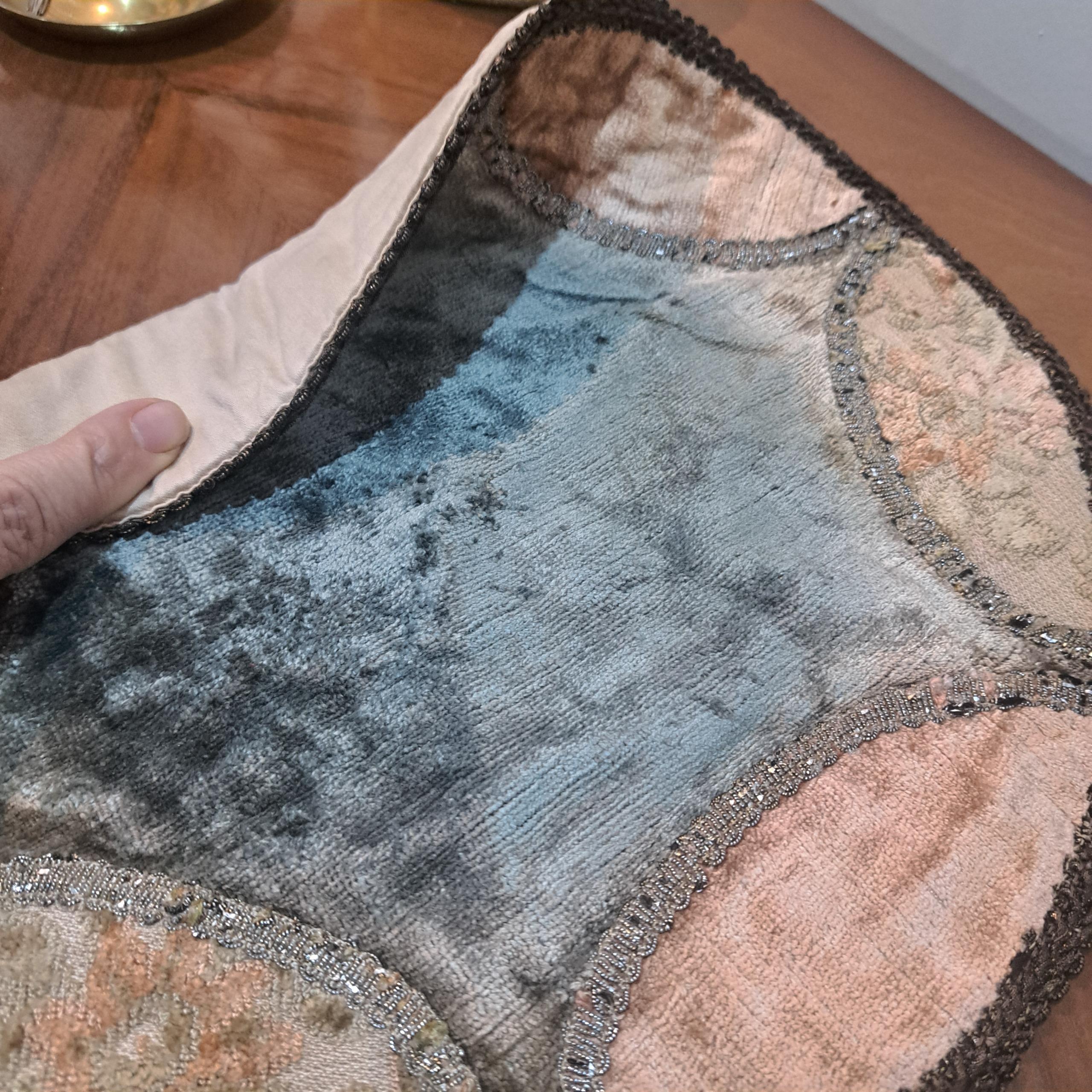 رومیزی یا موتیف خاص و زیبای مخمل قدیمی ترکیب مخمل ساده و گل دار و یراق های زیبا (یراق دور سیمی ) مخمل وسط سایه دار استرکشی و ضخیم دوزی شده