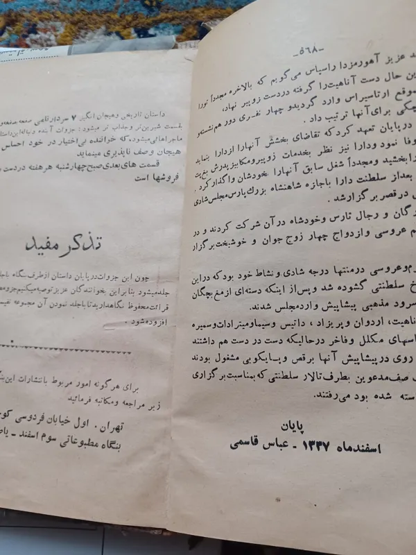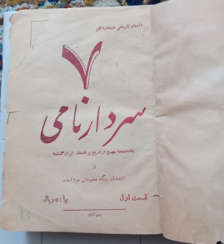 کتاب 7 سردار نامی چاپ ا ولیه که در ابتدا بصورت جزوات هفتگی منتشر میشده و سپس صحافی شده.