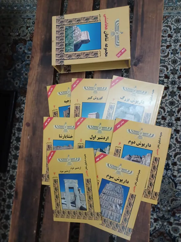 مجموعه 8 جلدی شاهان هخامنشی به همراه قاب جعبه ای.با قیمت بسیار مناسب .