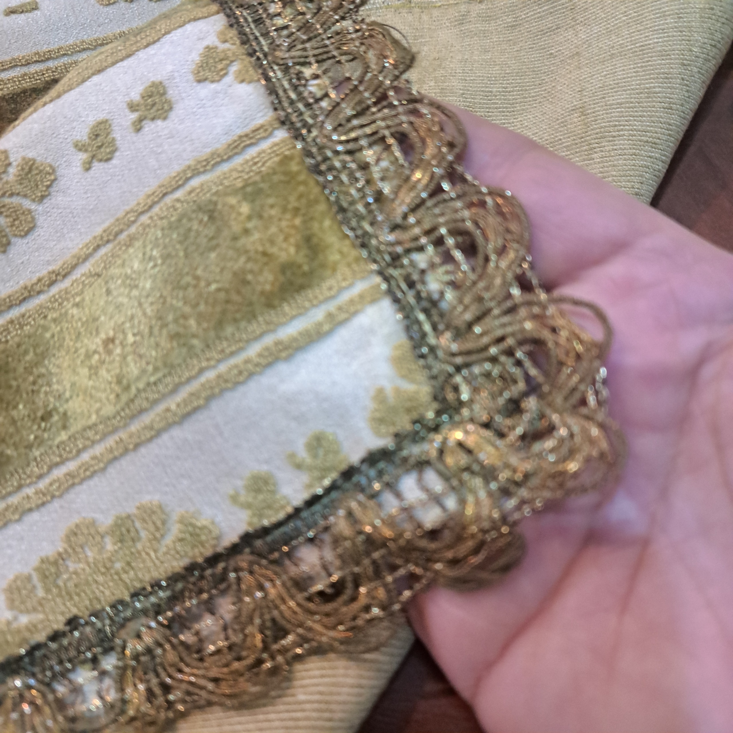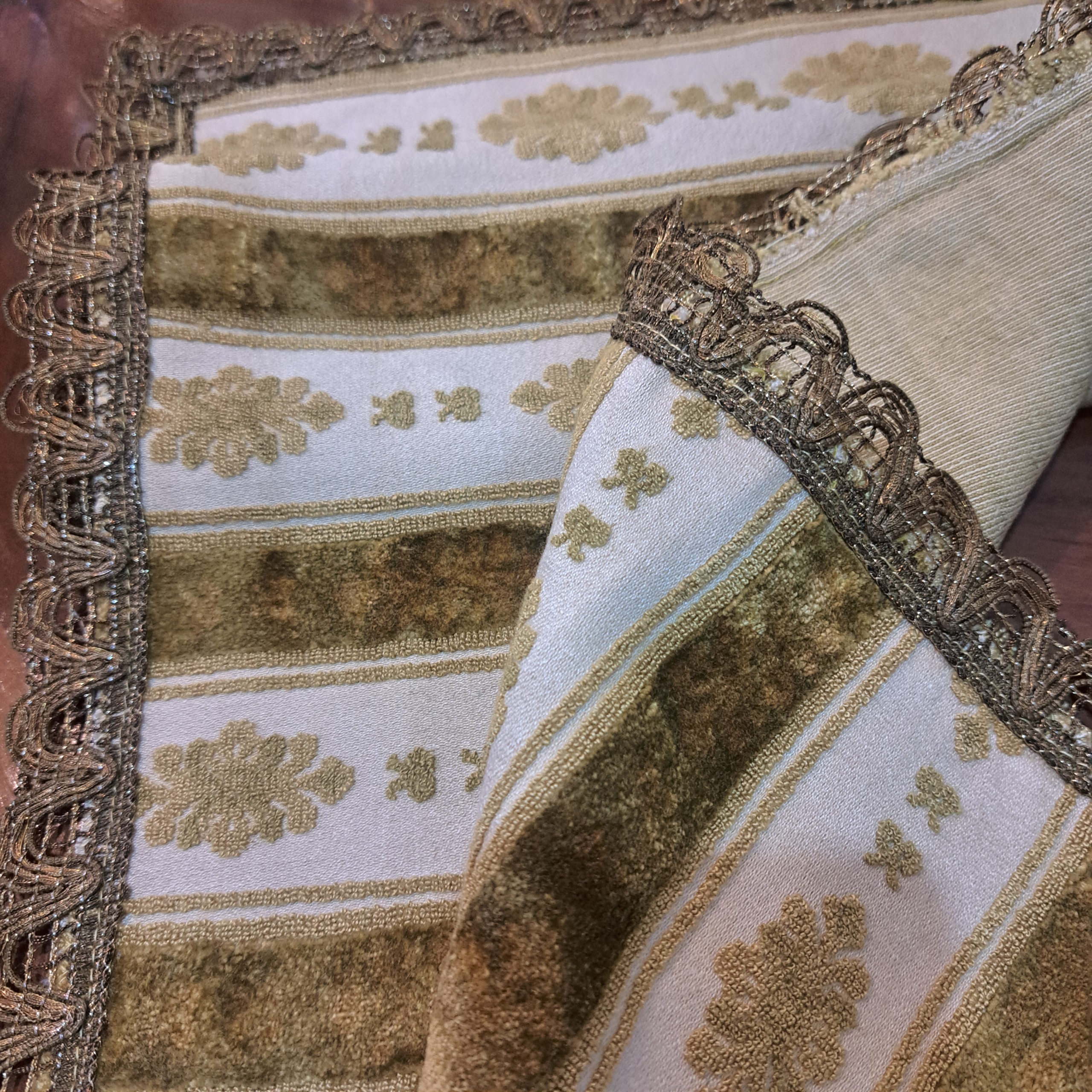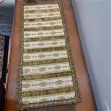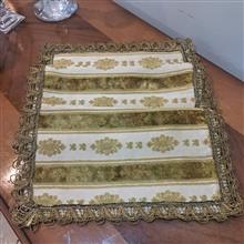 رومیزی مخمل بلزیکی گل برجسته قدیمی رنگ طبز زیتونی با یراق زیبا و خاص سیمی