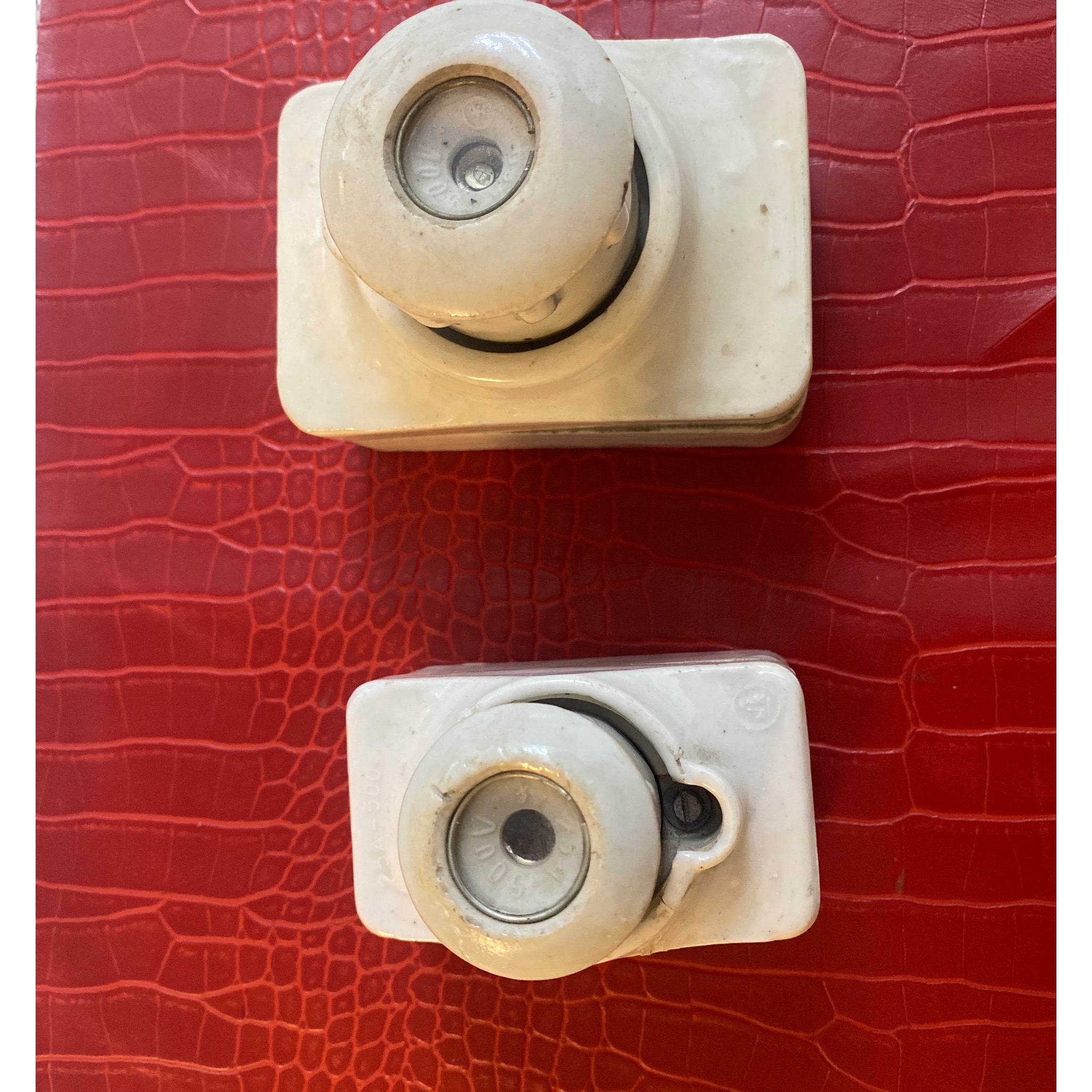 پک دو عددی فیوز شیشه ای بسیار قدیمی نوستالوژی در دو اندازه صنعتی و خانگی ( 60 آمپر و 25 آمپر) نو و کار نکرده ساخته شده از چینی ساخت خارج