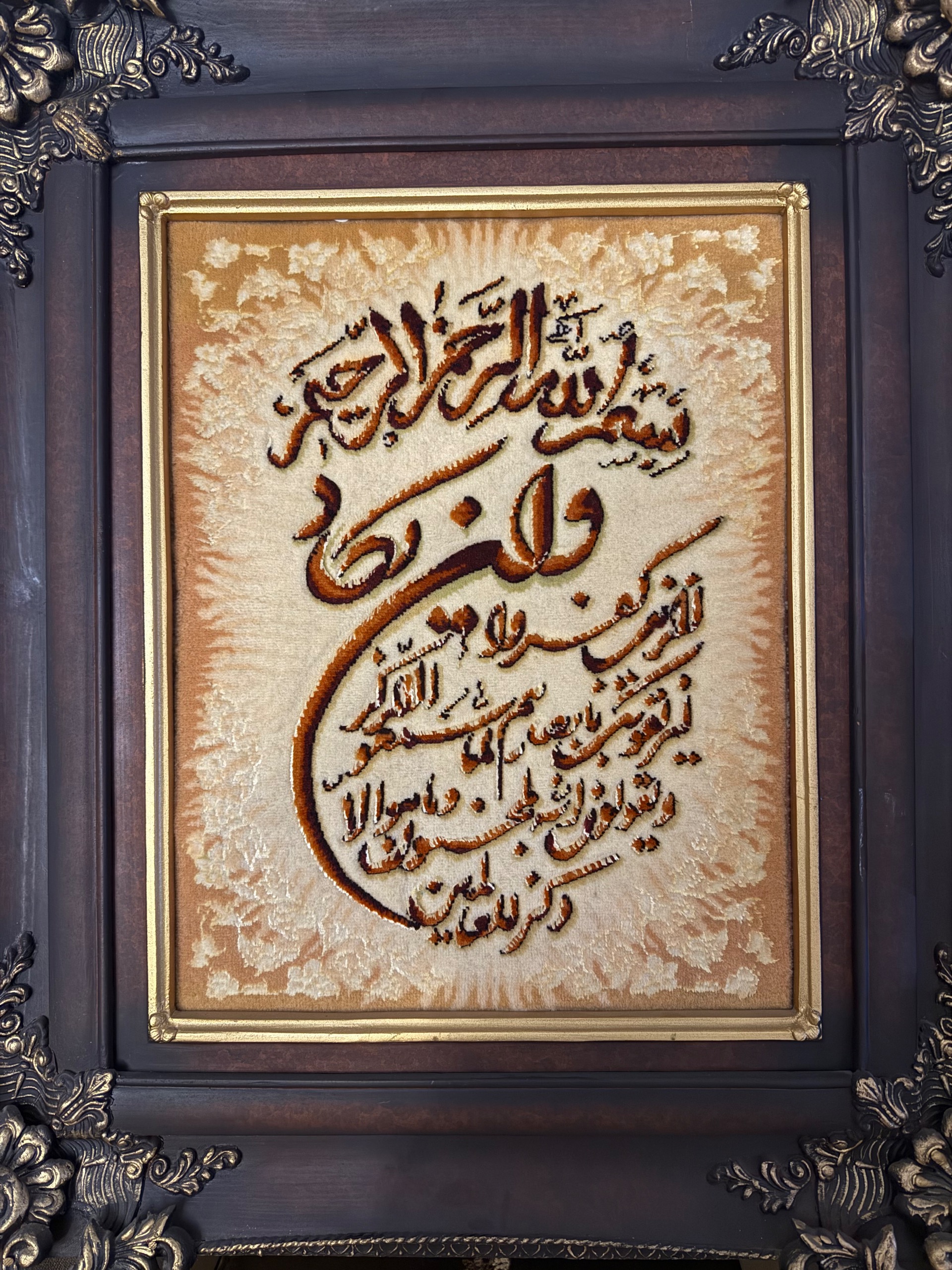 تابلوفرش دستبافت گل ابریشم وان بکاد باقاب زیبااندازه فرش بدون قاب پشت تابلونوشته شده وگوشه قاب یه ترک کوچک داره که ازپشت قابل رویت ولی ظاهری مشکل نداره