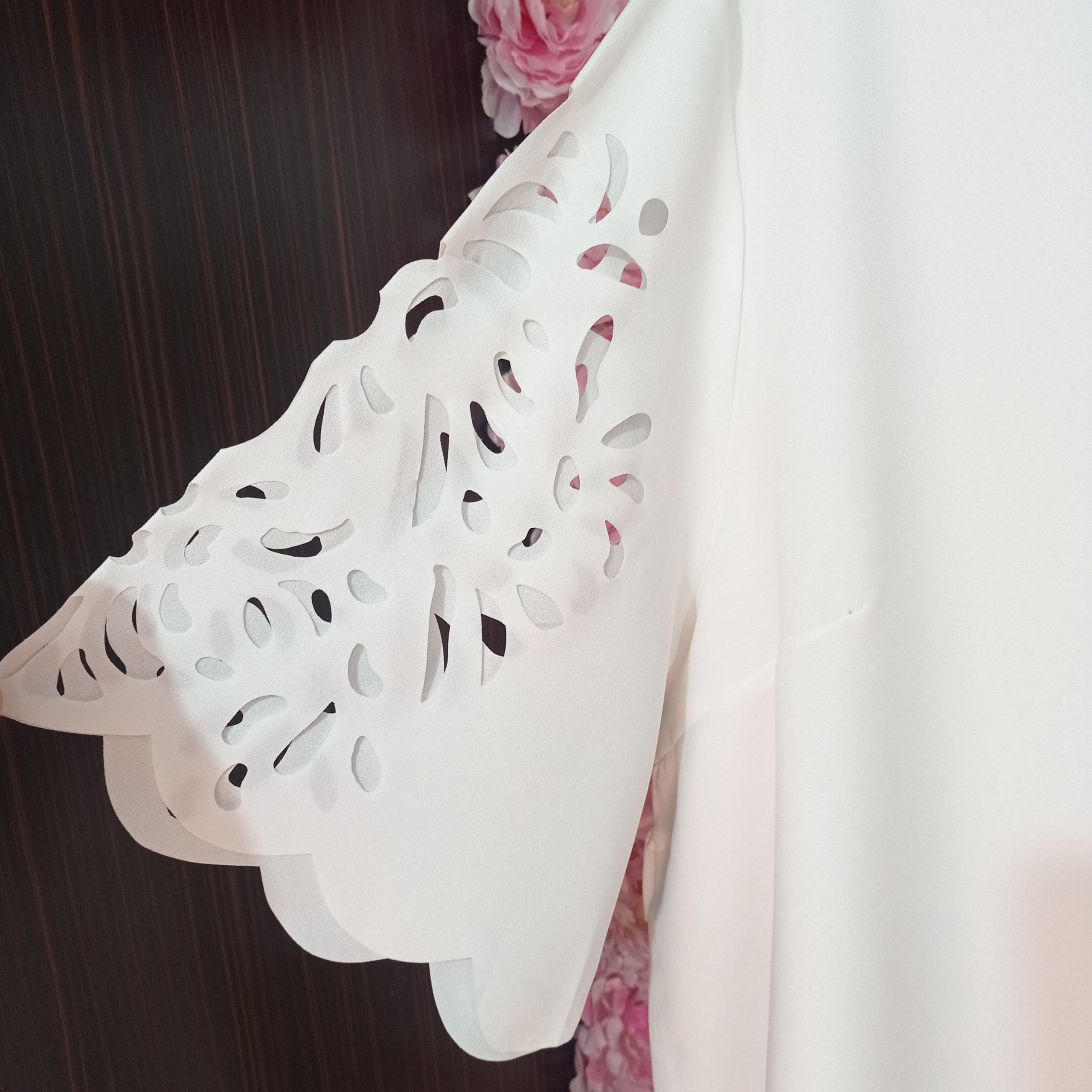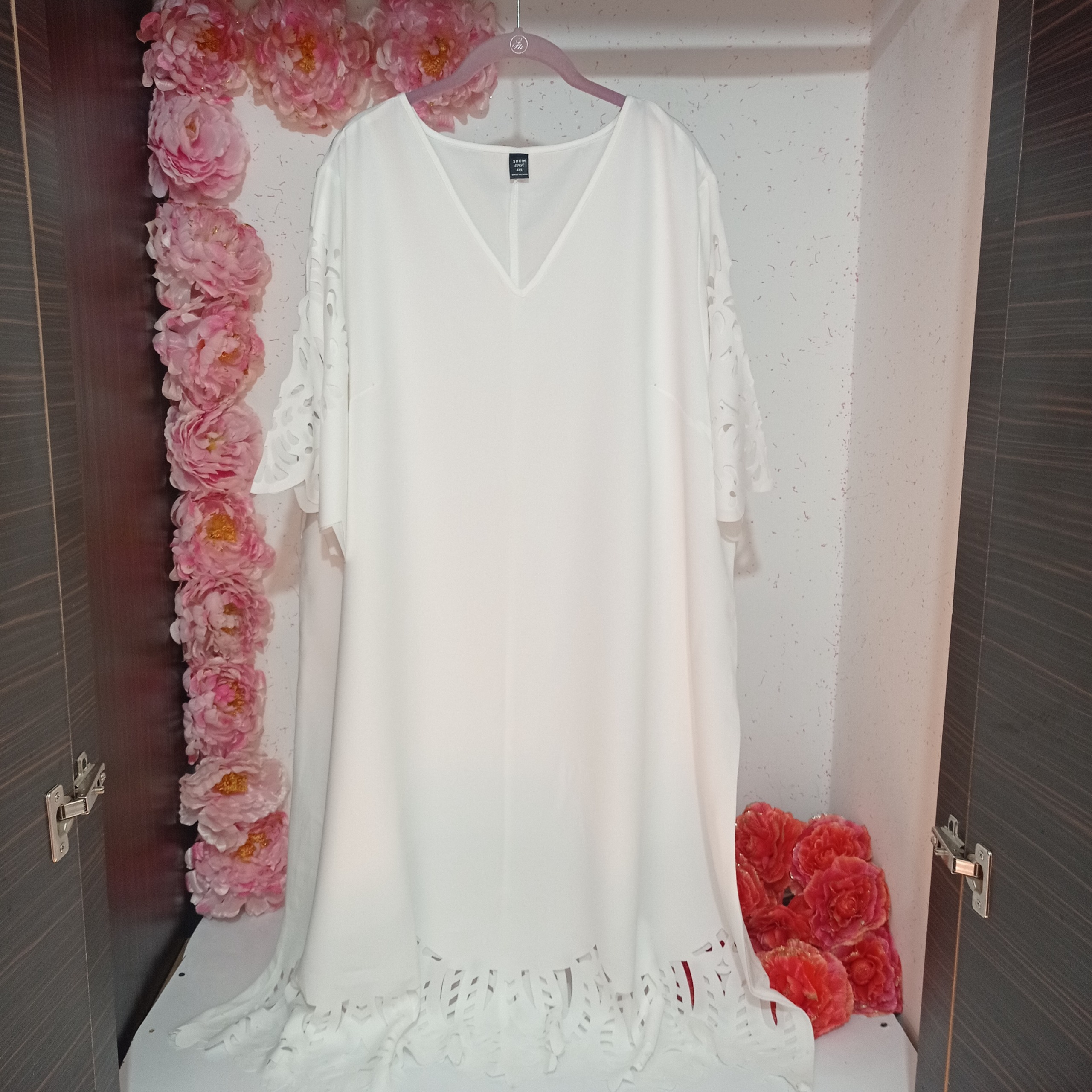 پیراهن زنانه سفید ، 4xl ، قد لباس 114 ، آستین سه ربع ، فاصله دو زیر بغل ها 70