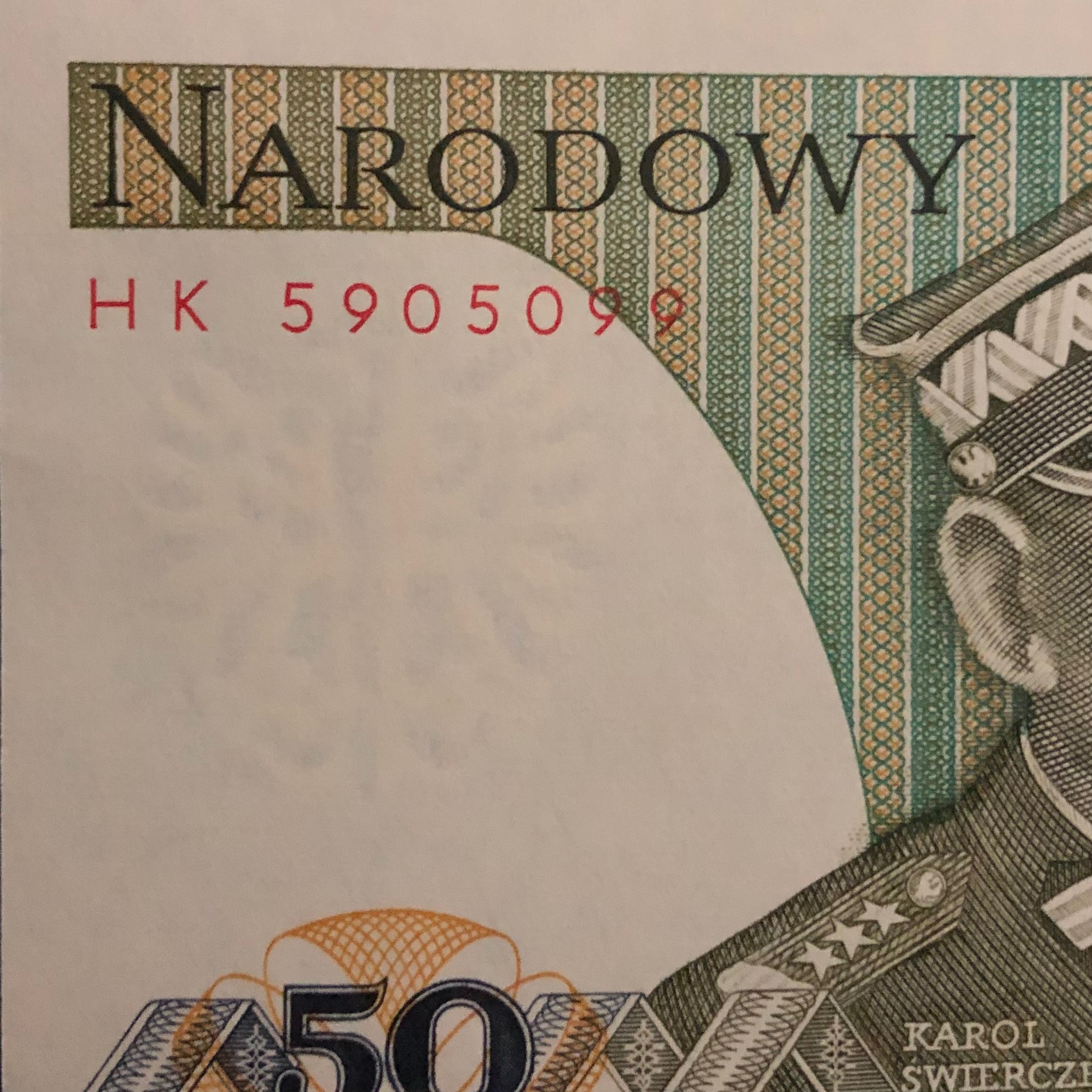 اسکناس تک 50 زلوتی لهستان (1988) شماره زیبا