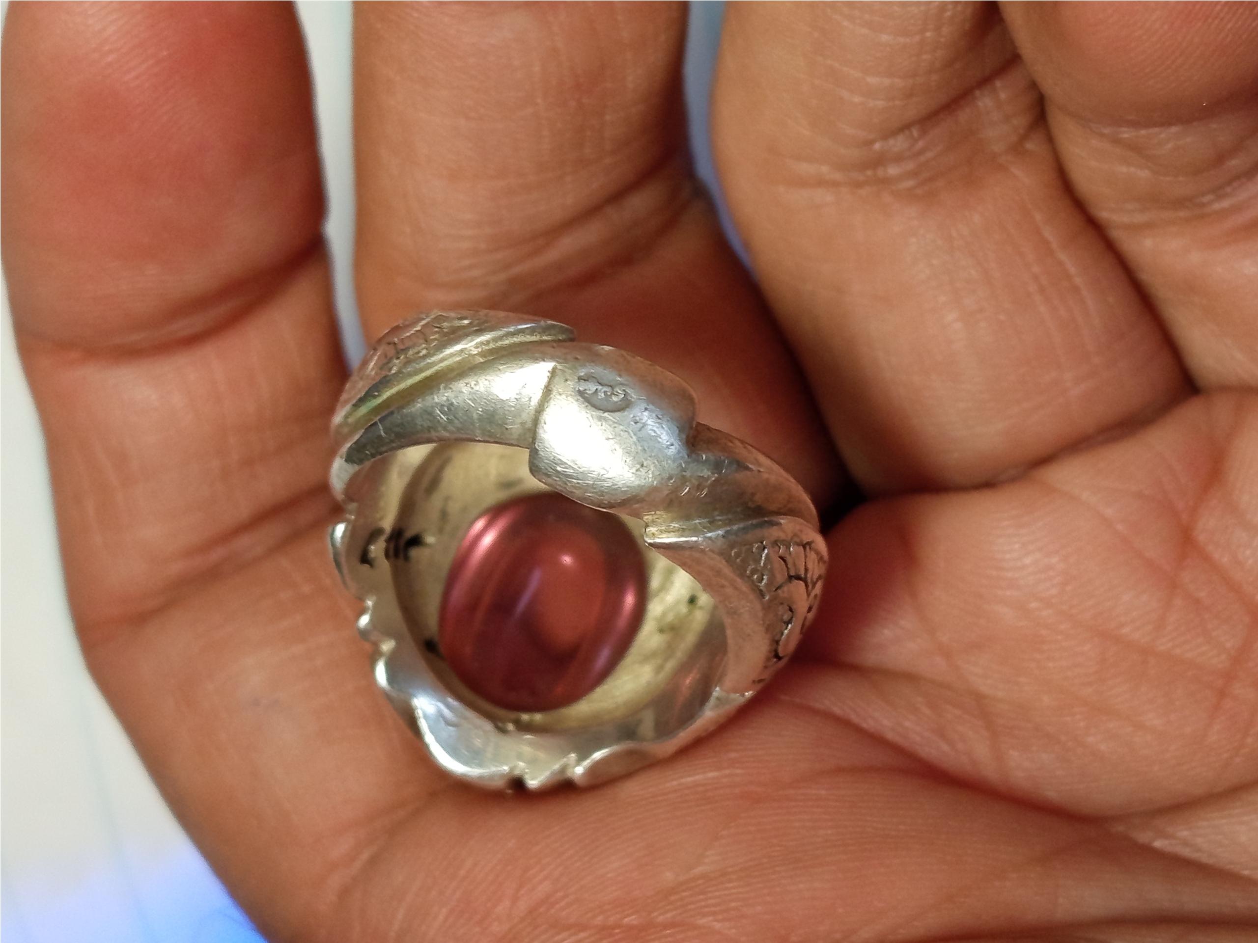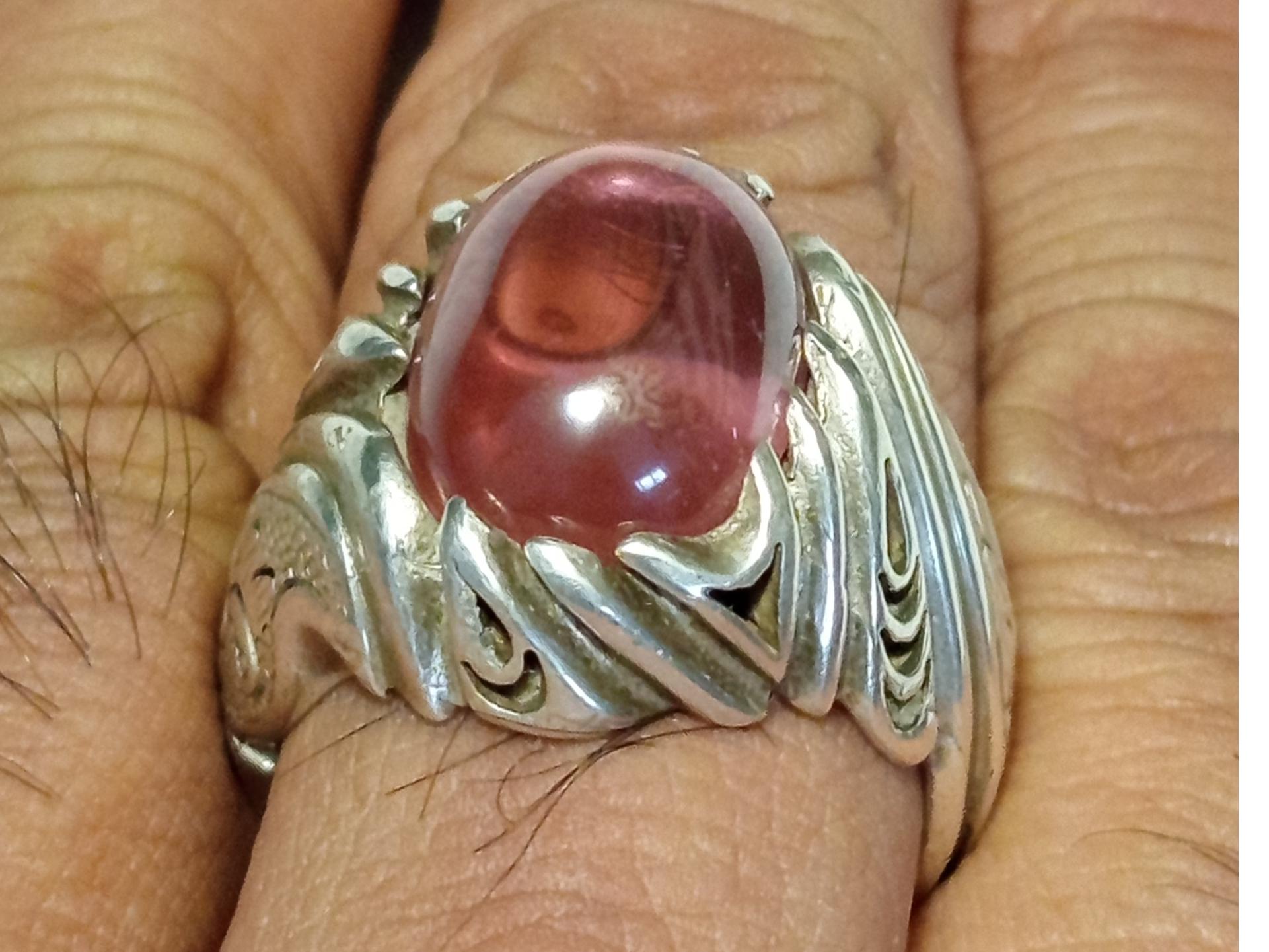 انگشتر نقره دست ساز با نگین لعل طبیعی احتمالا برمه