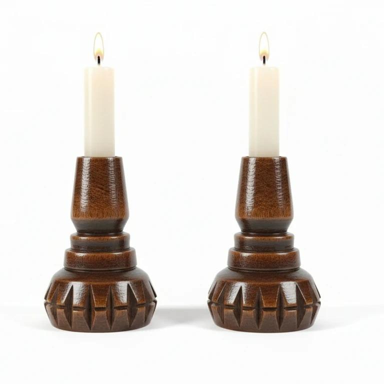 جاشمعی ایستاده شیار دار چوبی منبت مجموعه دو عددی