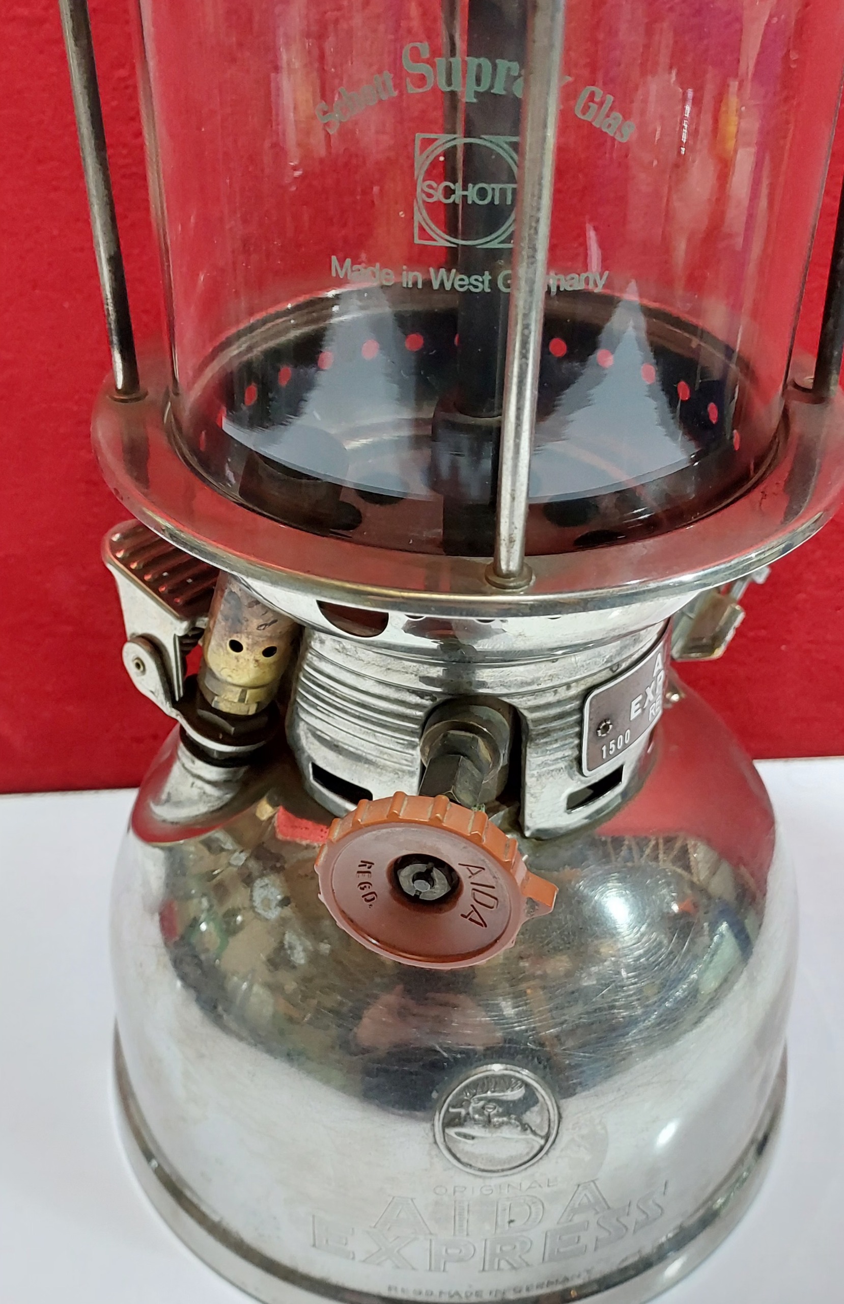 ساخت قدیم آلمان برند معتبر معروف آیدا اکسپرس با شیشه اصلی سالم تمیز فقط طبق تصاویر یکم رنگ پریدگی و خطو خش دارد که مشکلی نیست لطفا دقت فرمائید.