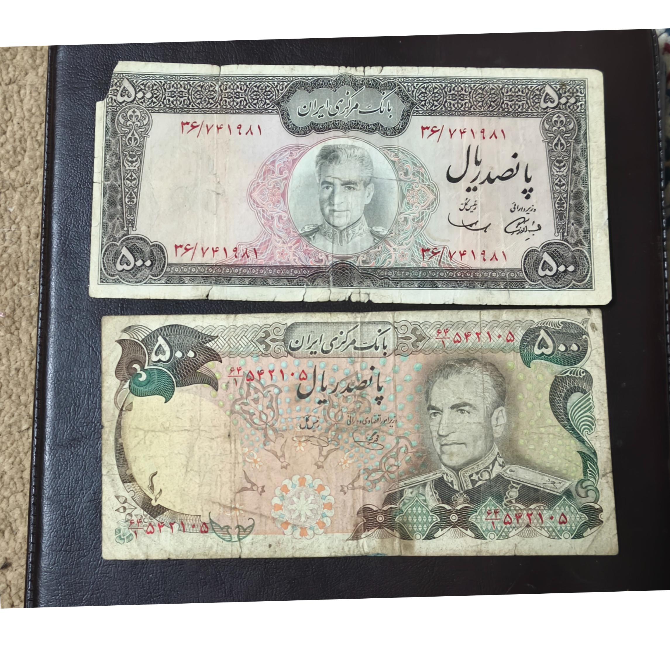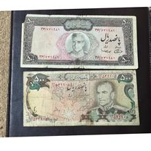 دو عدد پانصد ریالی محمد رضا پهلوی