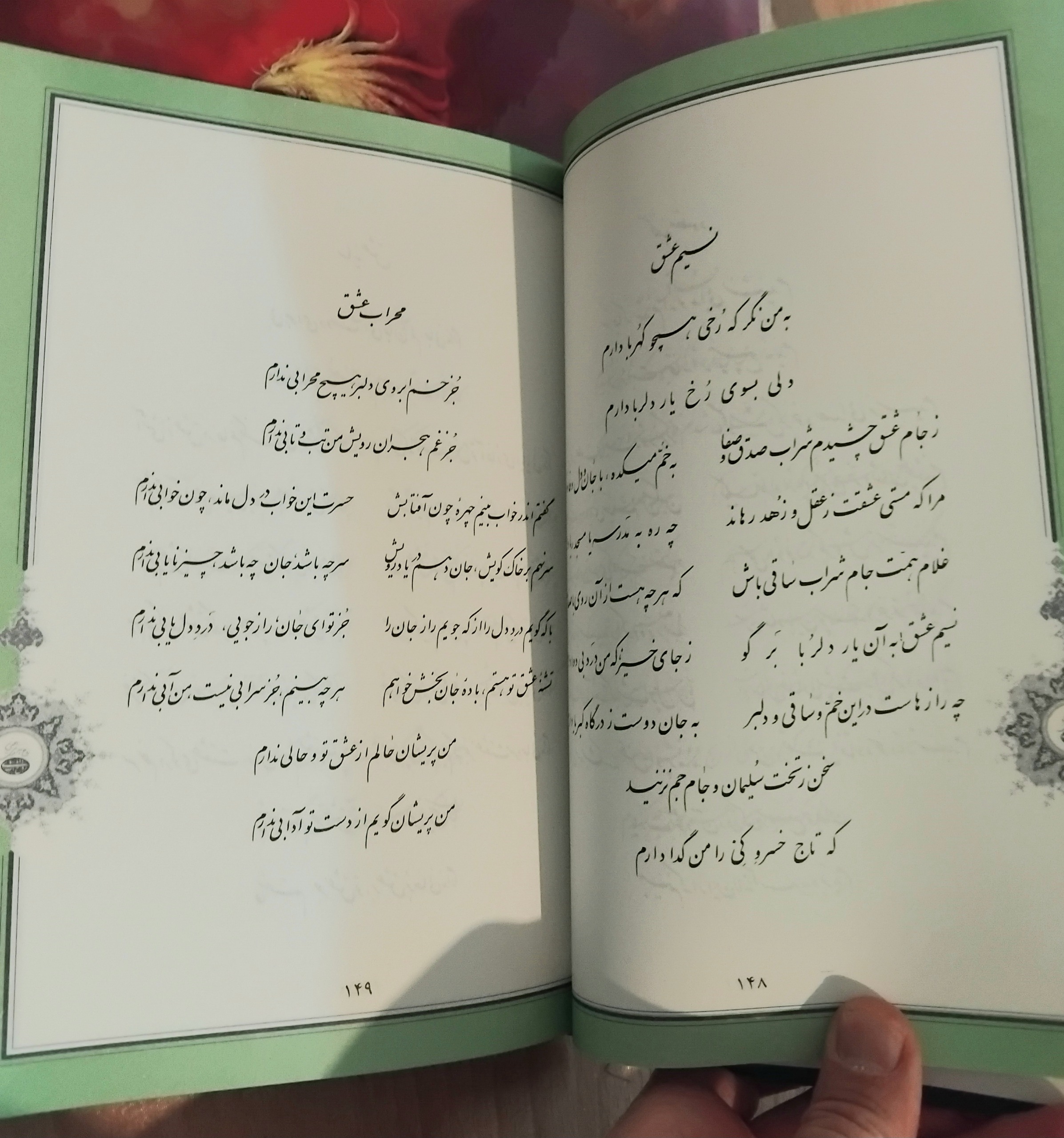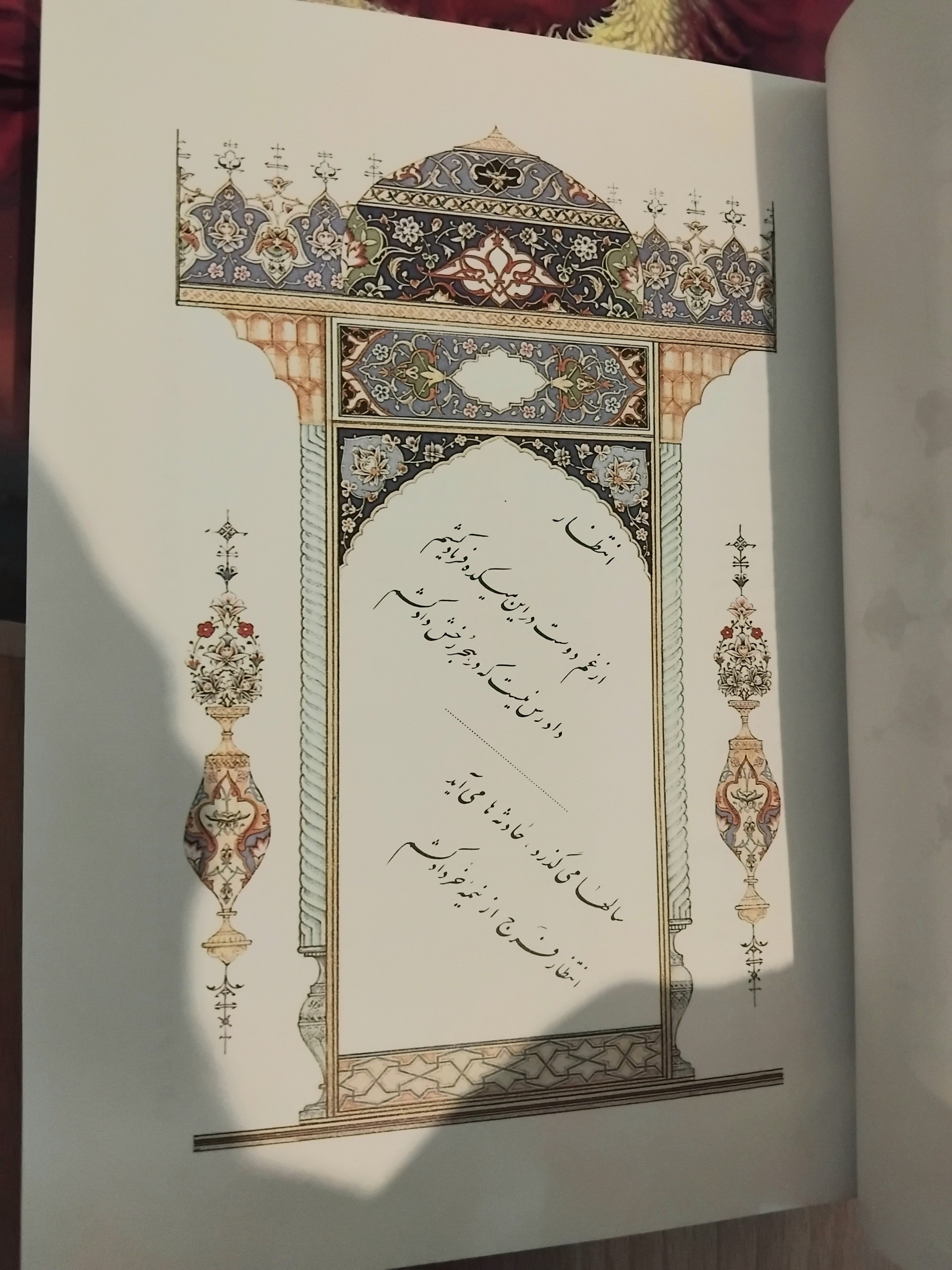 قطع وزیری، جلد سخت، طلاکوب زیبا، برگه اعلا سفید تحریری، دو رنگ و گل و بوته زیبا، 443 صفحه