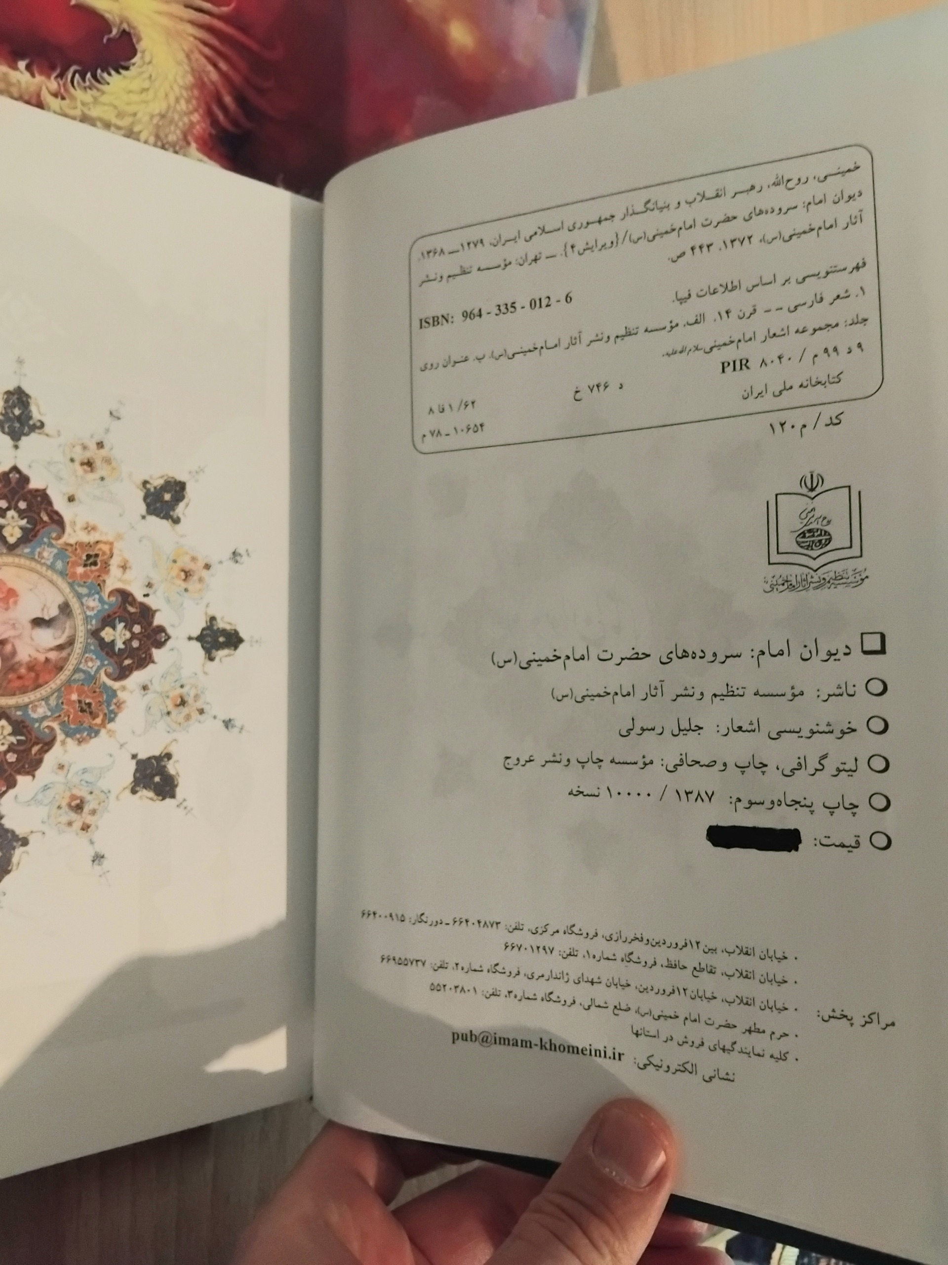 دیوان امام، مجموعه اشعار، همراه با نوشته تقدیمی