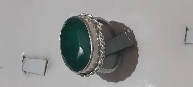 انگشتر 7.2گرمی دست ساز اصل نقره 950 نگین زمرد سبز طبیعی سایز 56