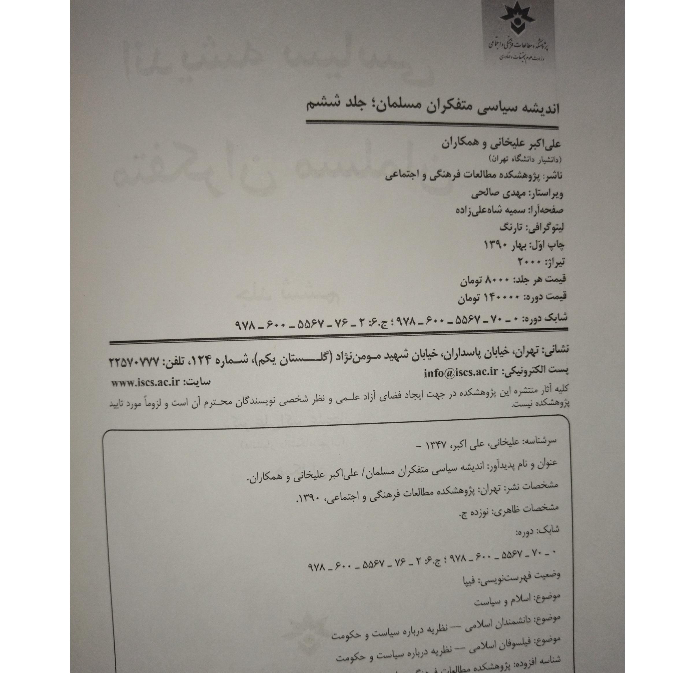 اندیشه سیاسی متفکران مسلمان جلد ششم