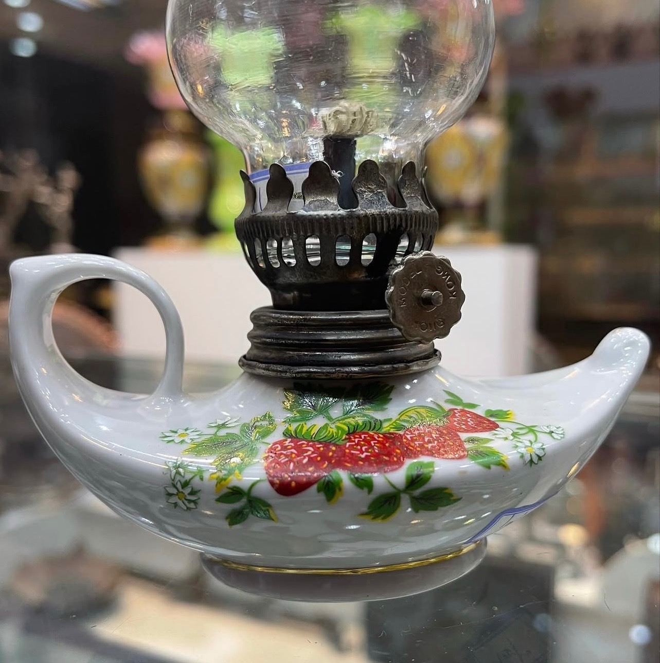 چراغ مینیاتوری قدیمی رومیزی نفتی گلسرخی