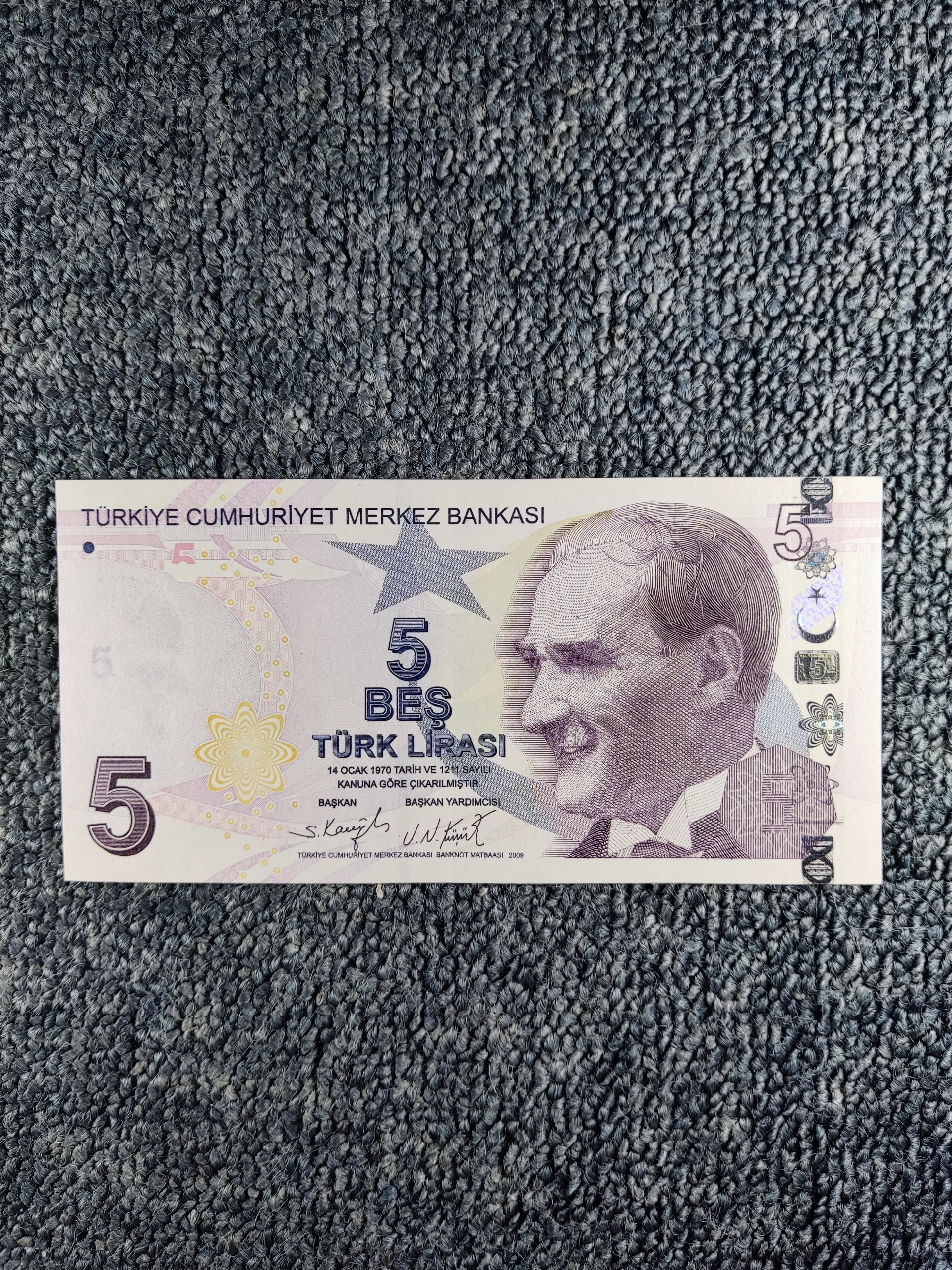 اسکناس 5 لیر ترکیه چاپ 2009 اسکناس در حد بانکی میباشد